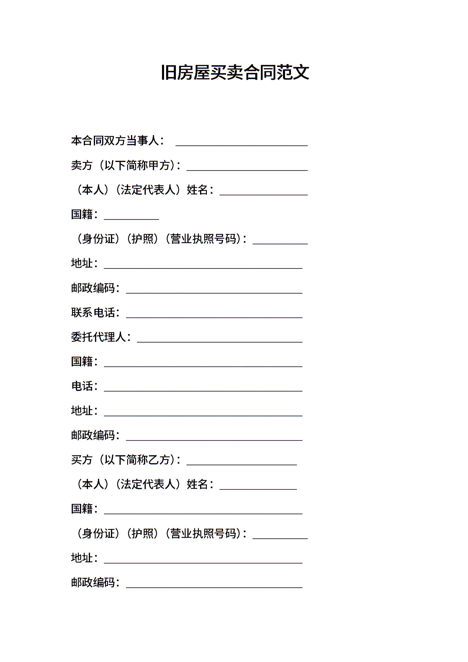 旧房屋买卖合同范文