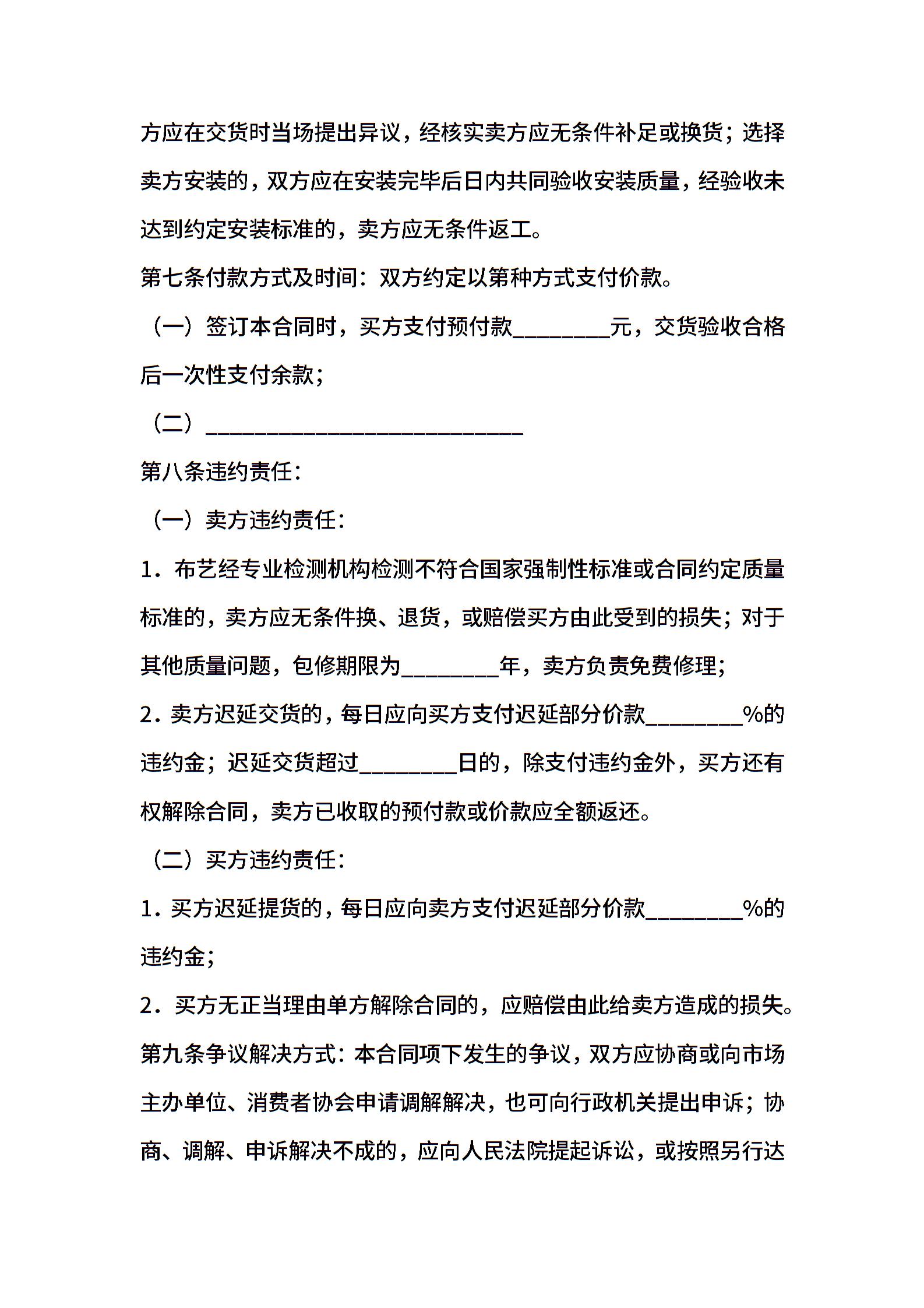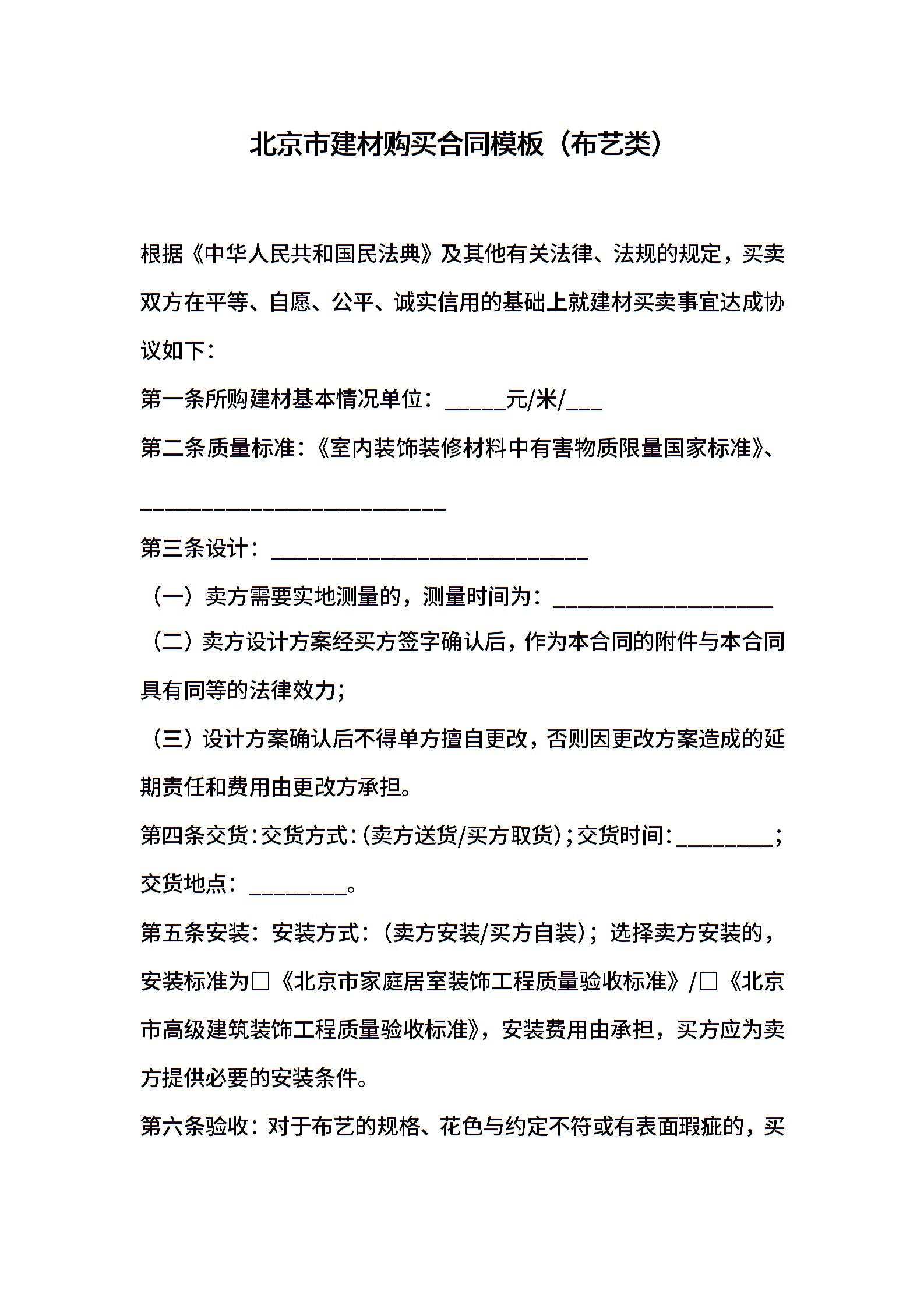 北京市建材购买合同模板(布艺类)