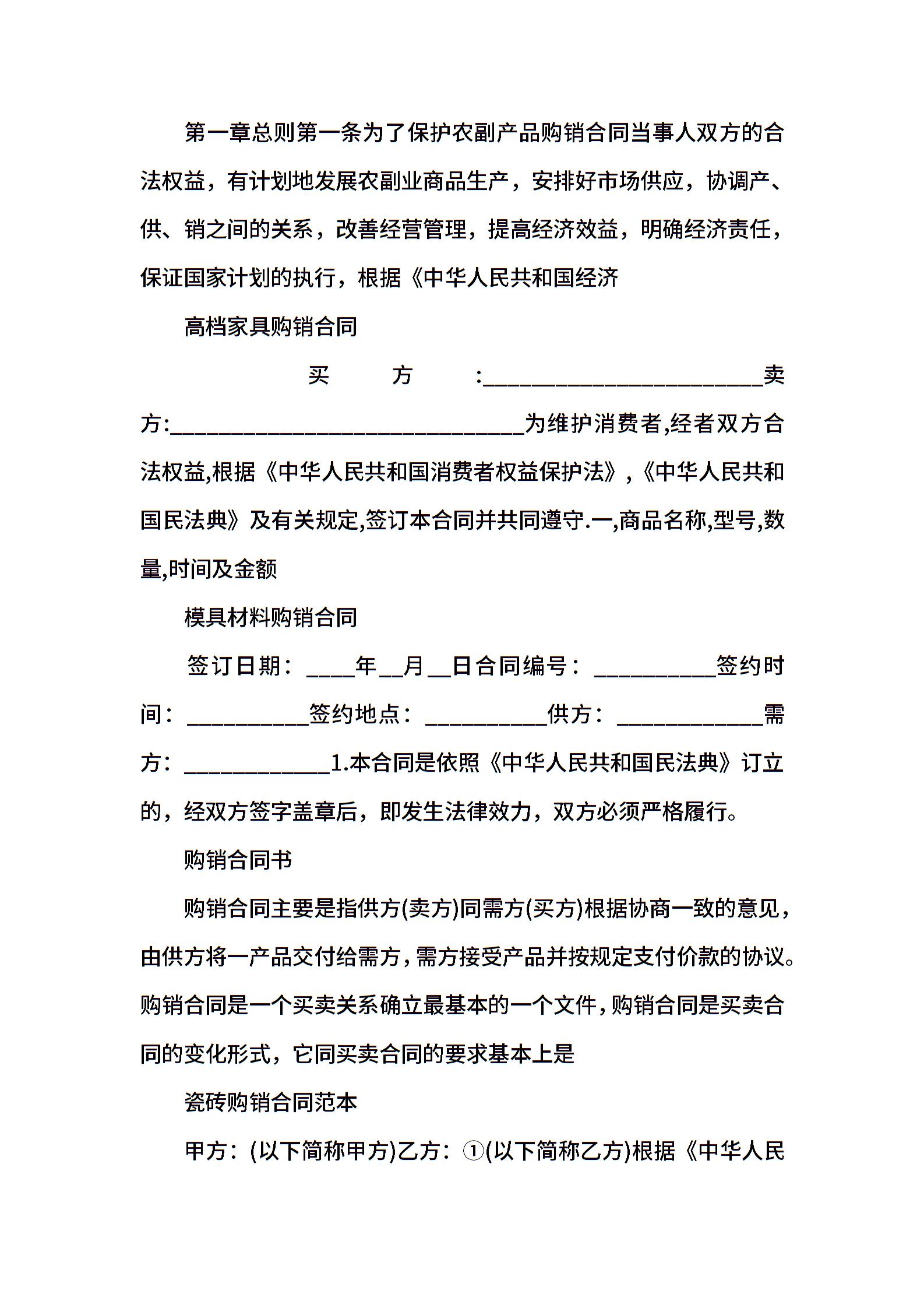 • 分类 购销合同