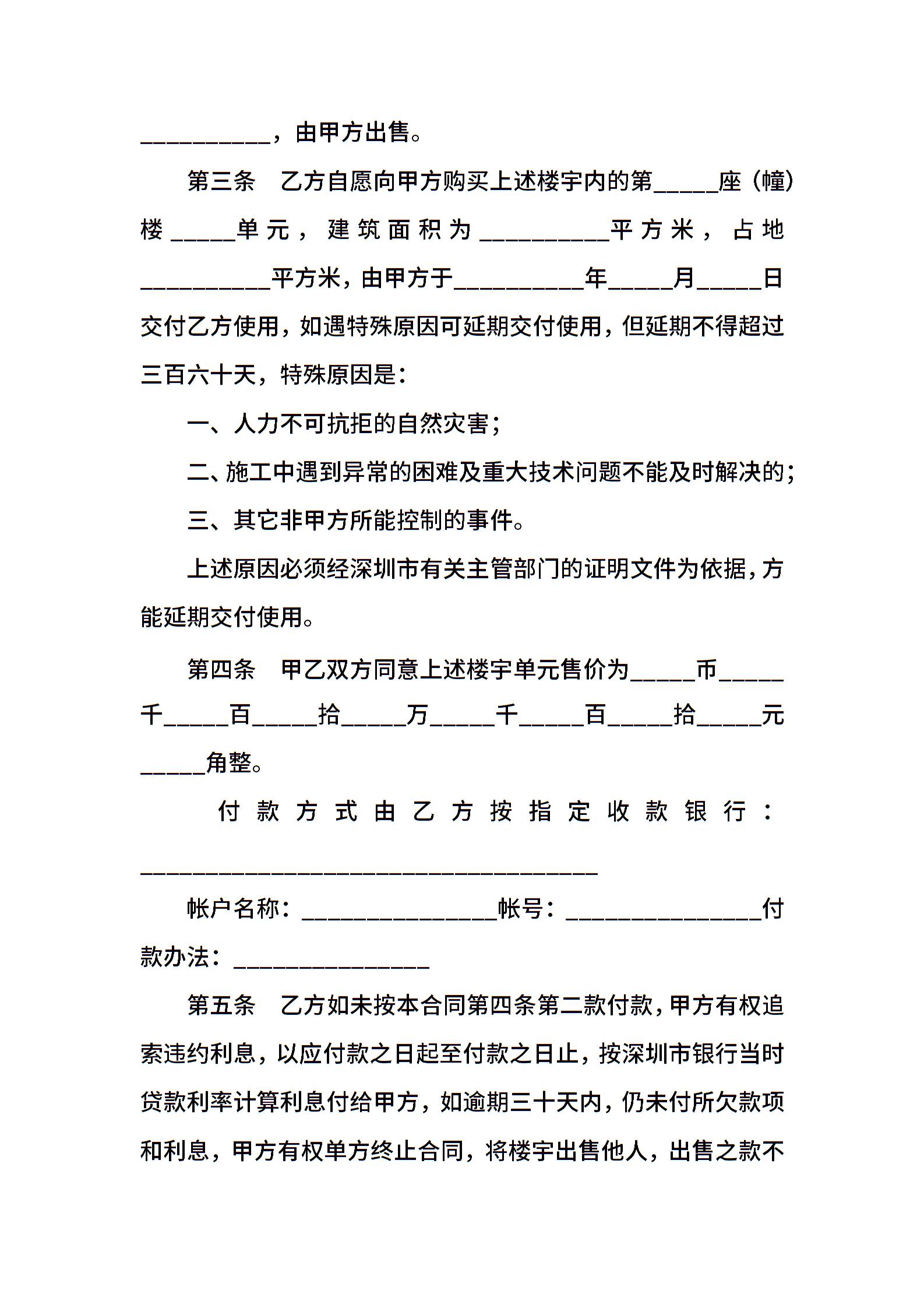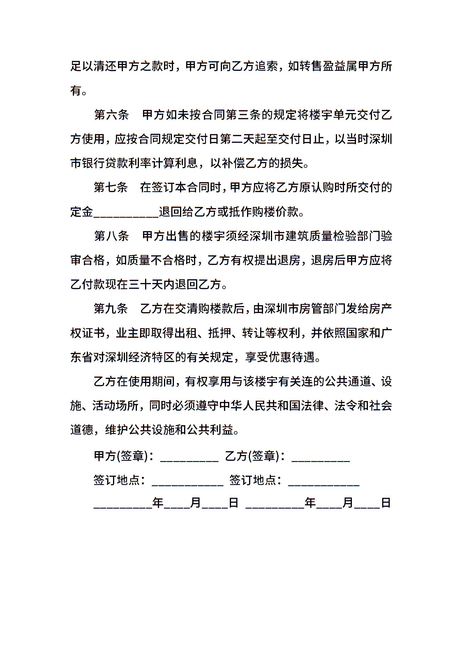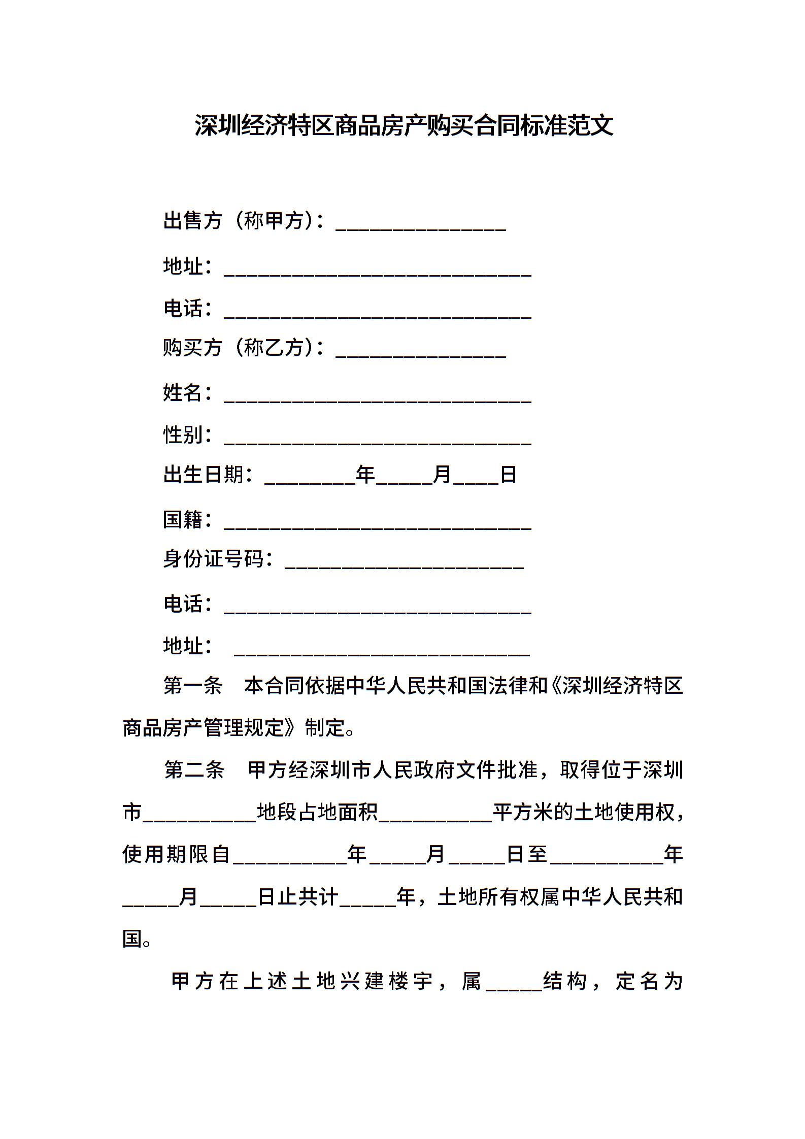深圳经济特区商品房产购买合同标准范文