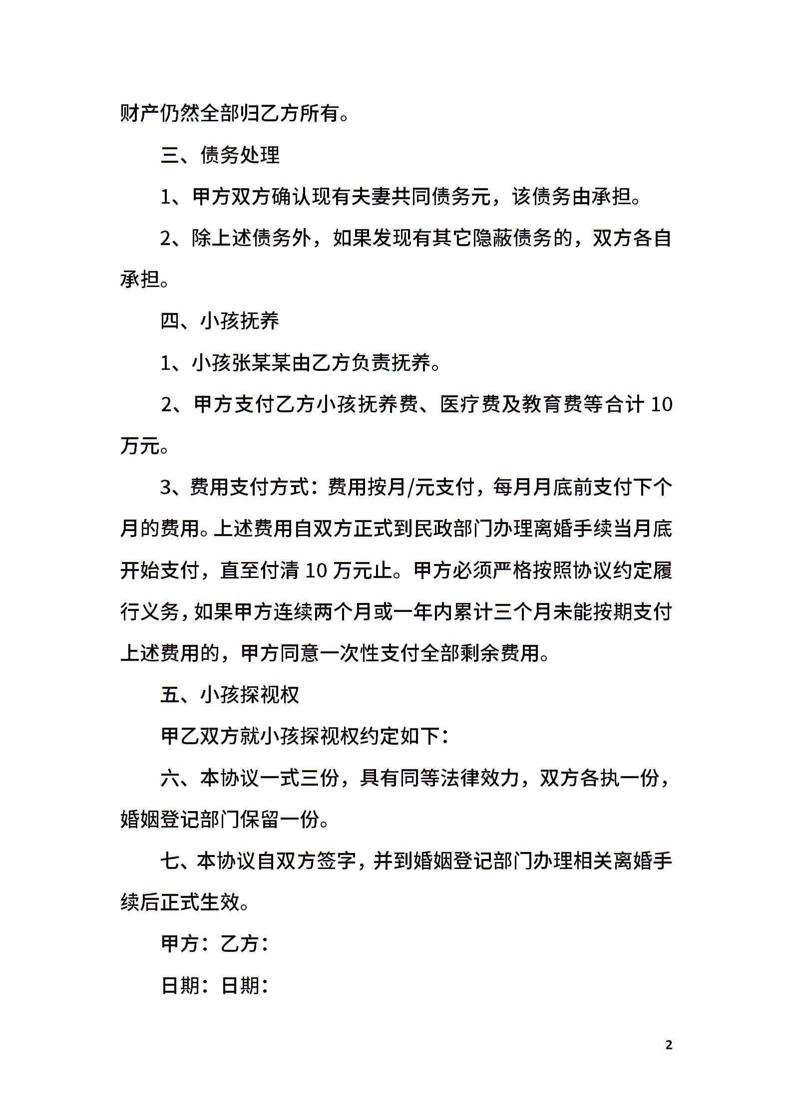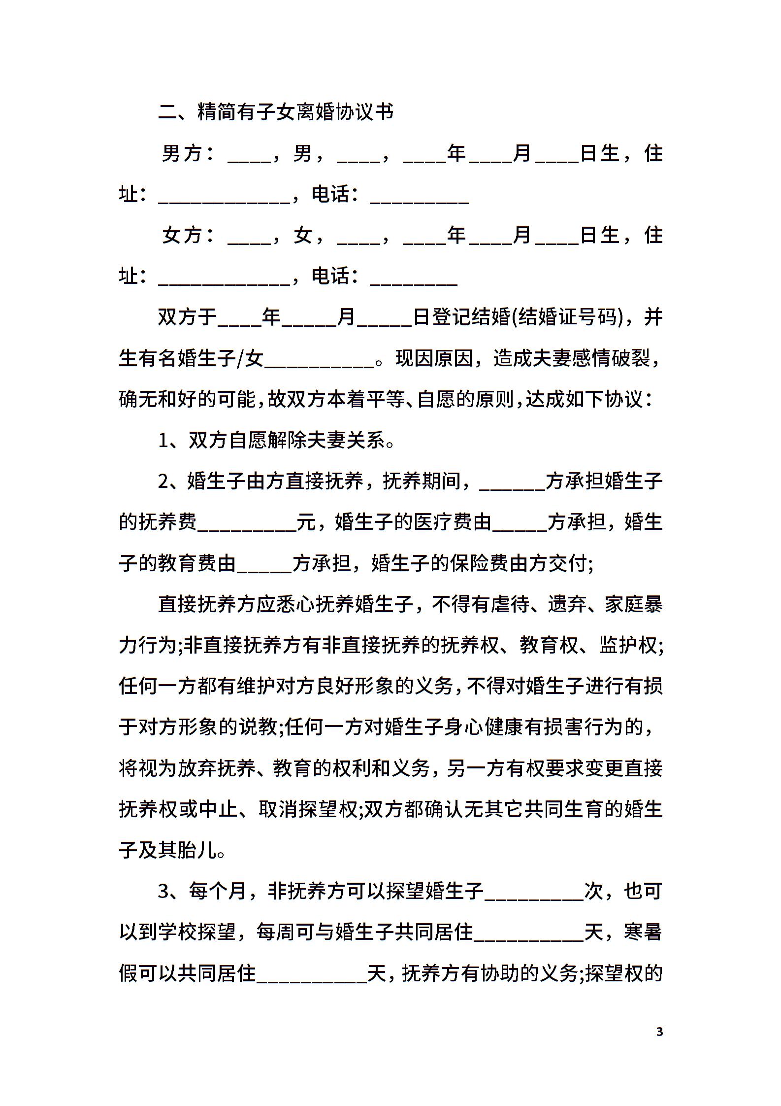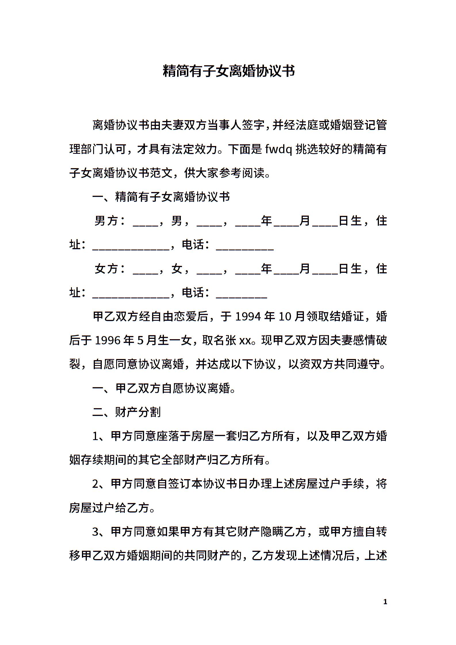 精简有子女离婚协议书