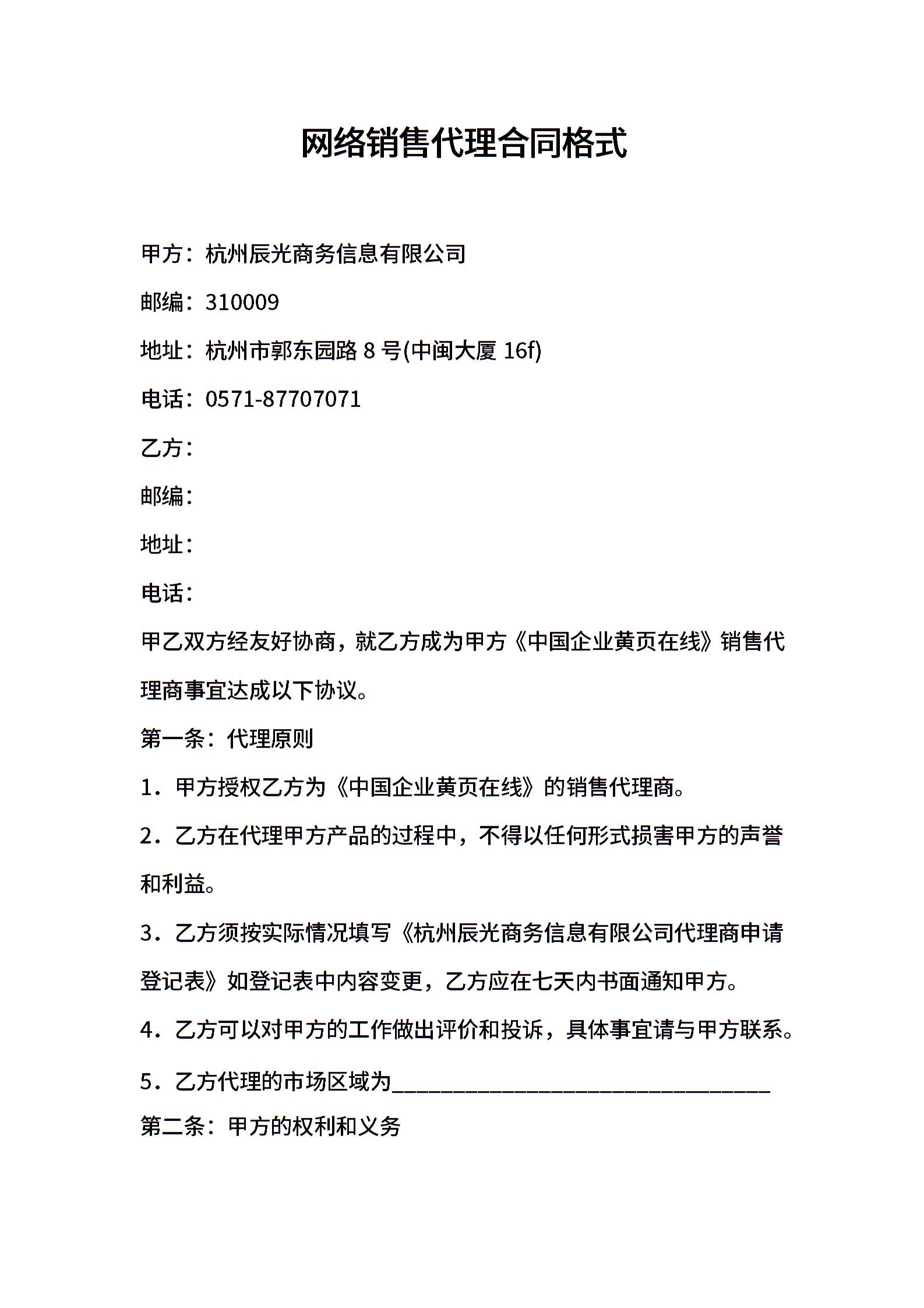 网络销售代理合同格式