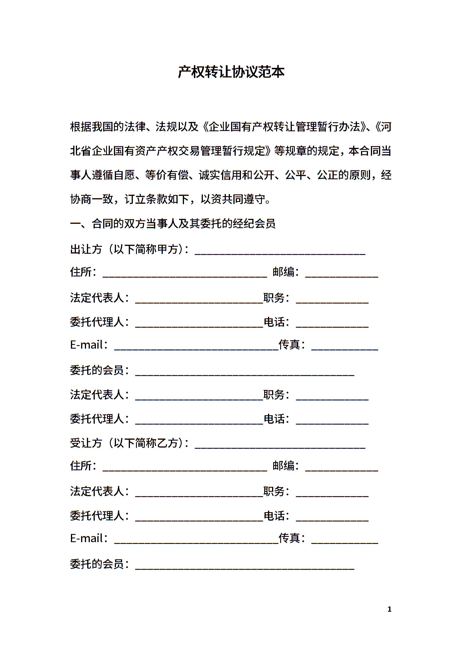 产权转让协议范本