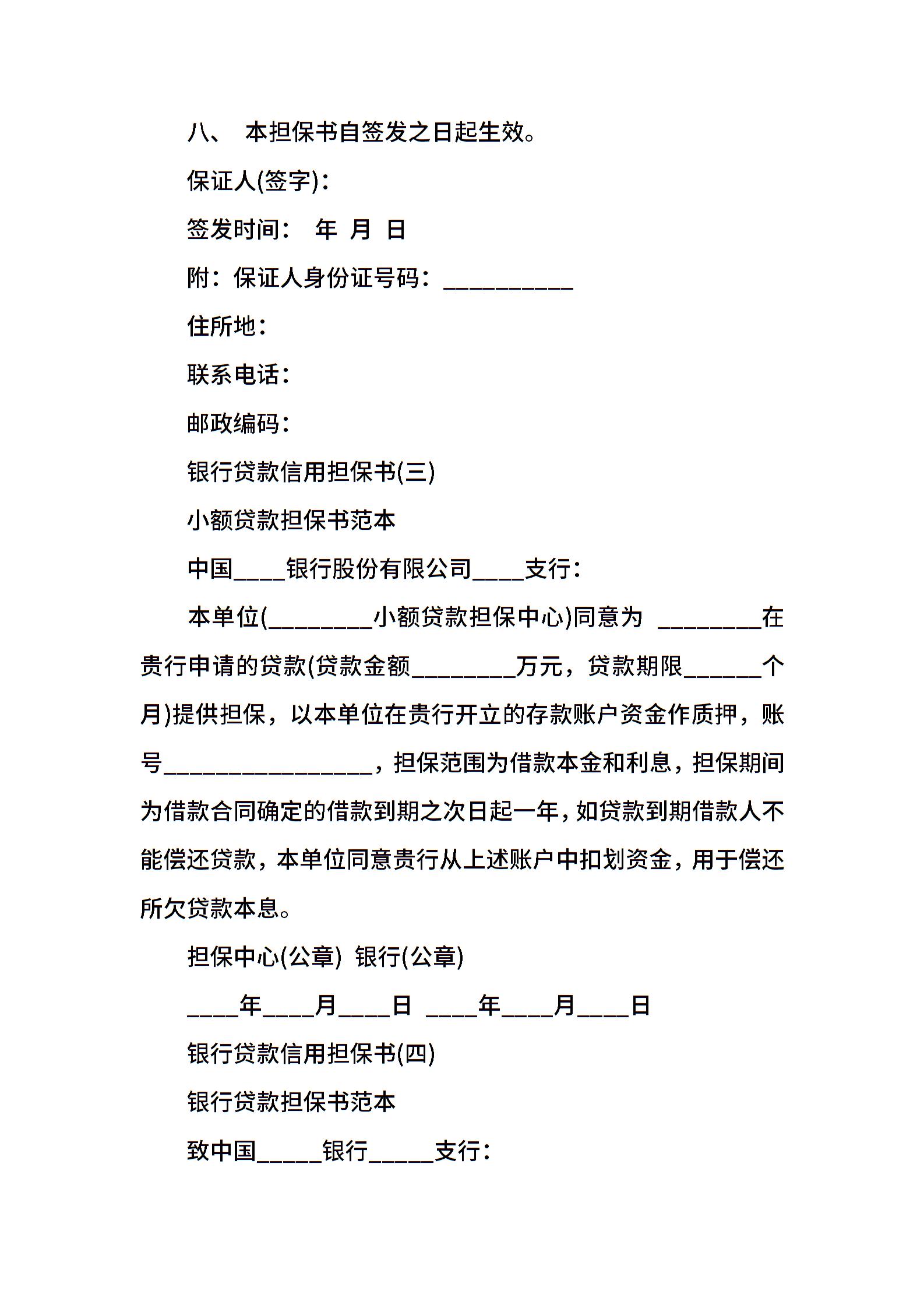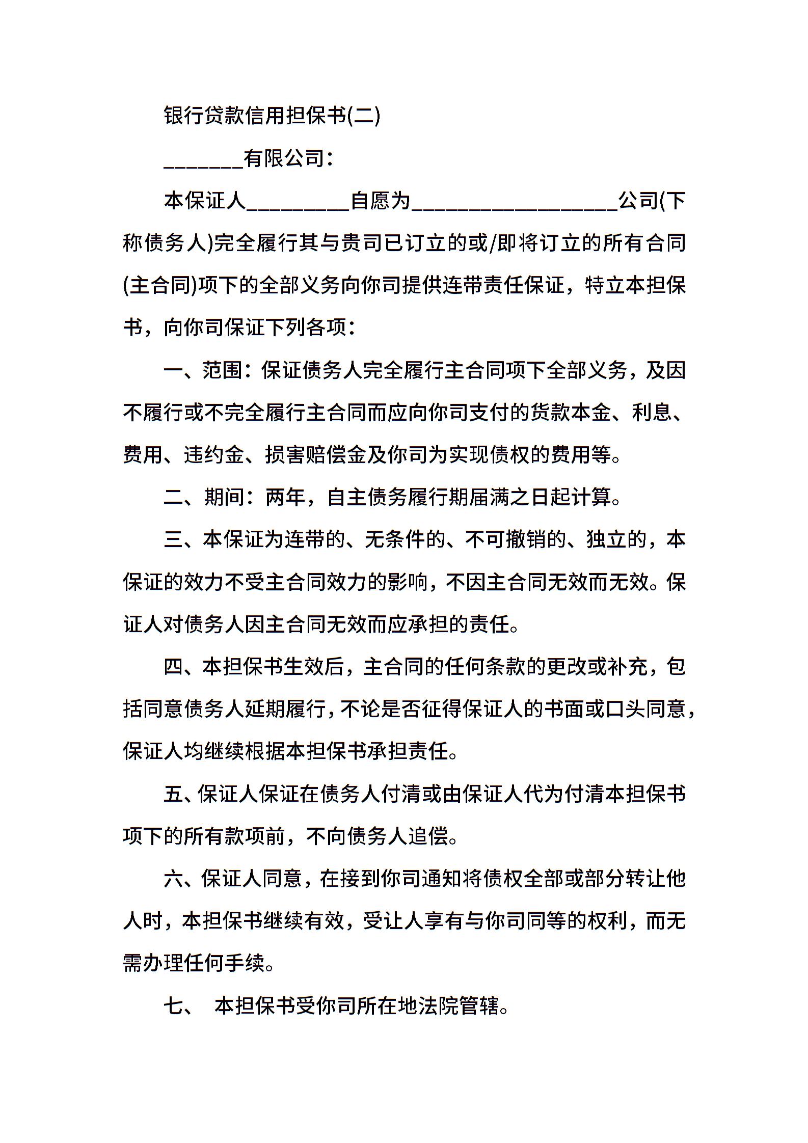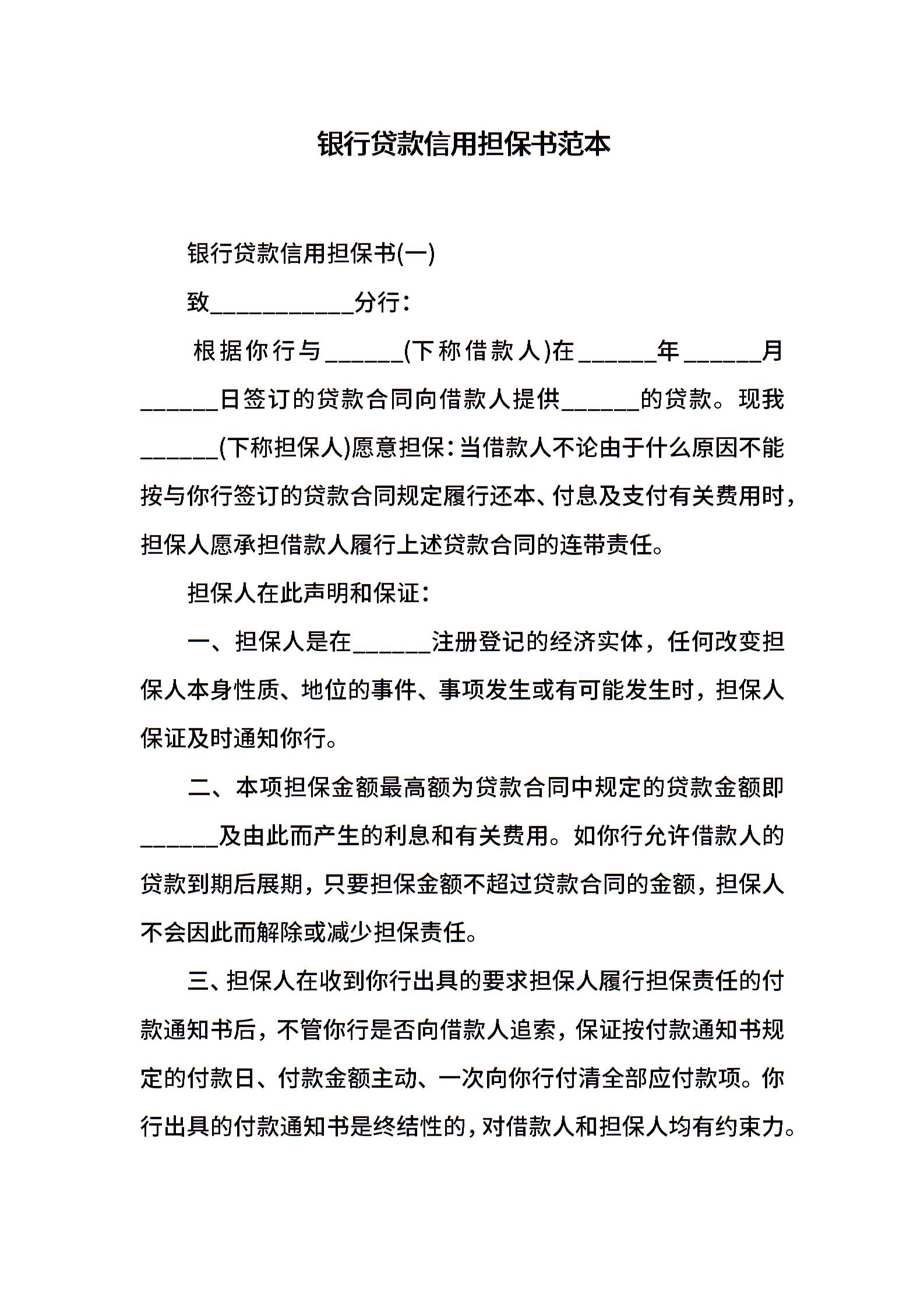 银行贷款信用担保书范本