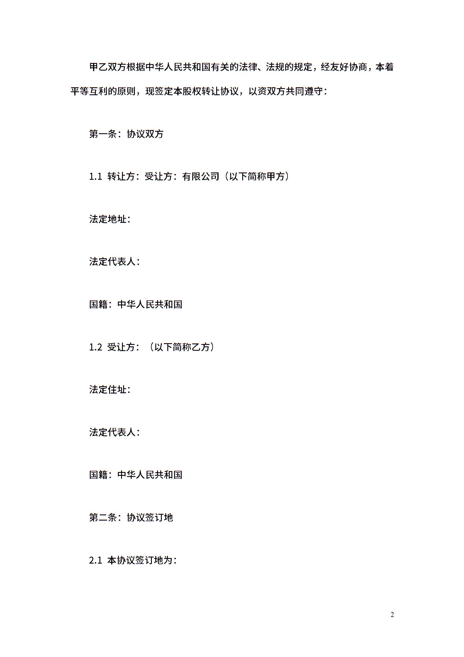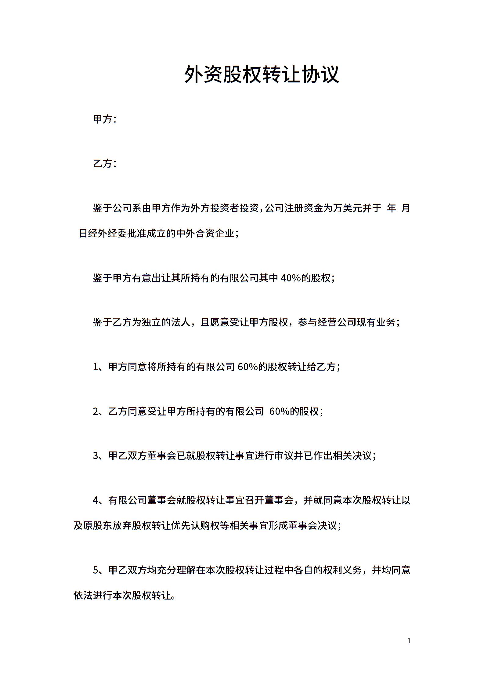 外资股权转让协议2