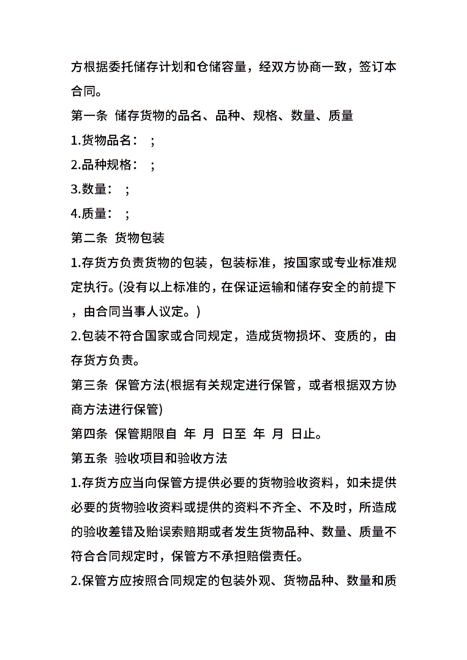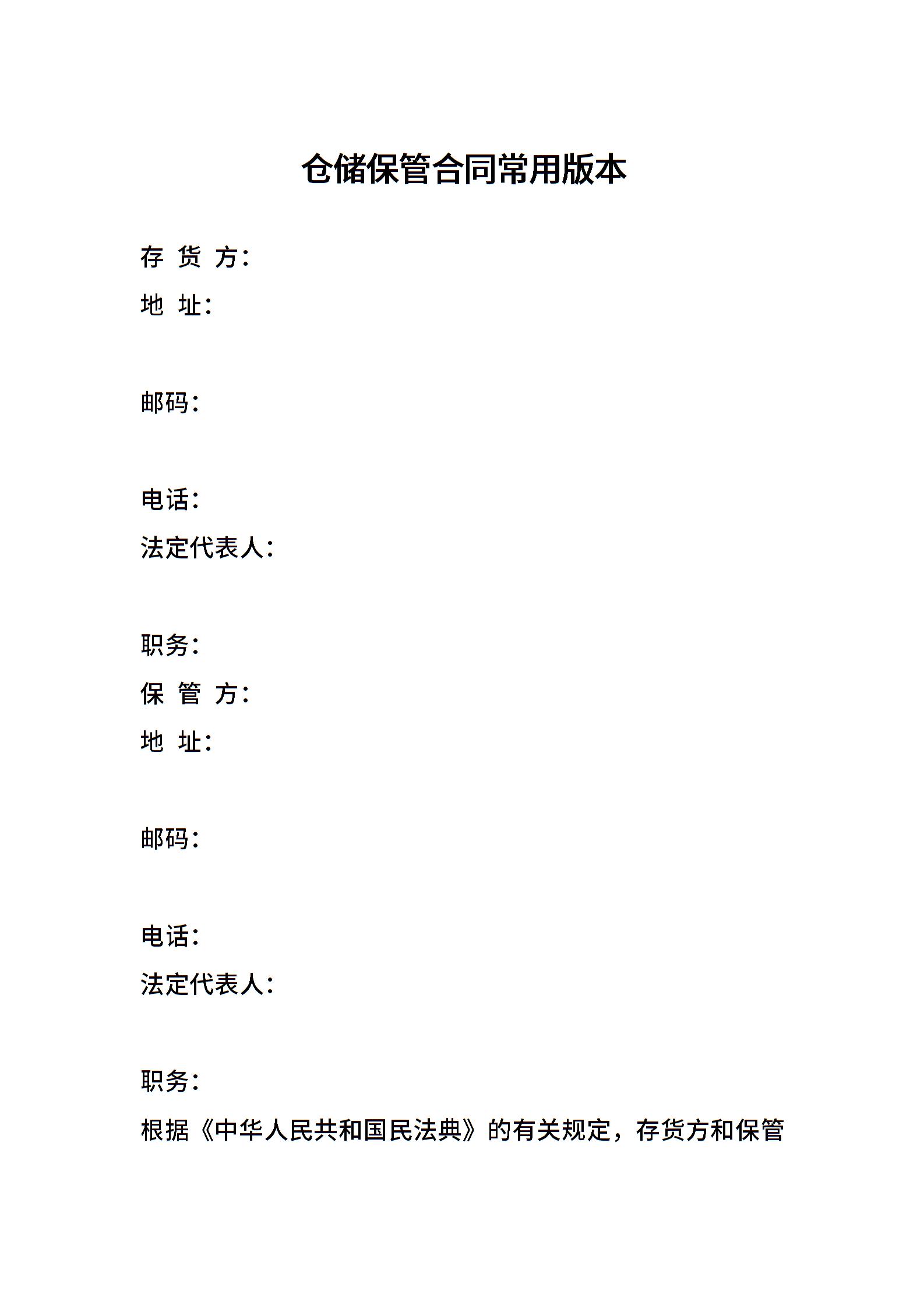 仓储保管合同常用版本