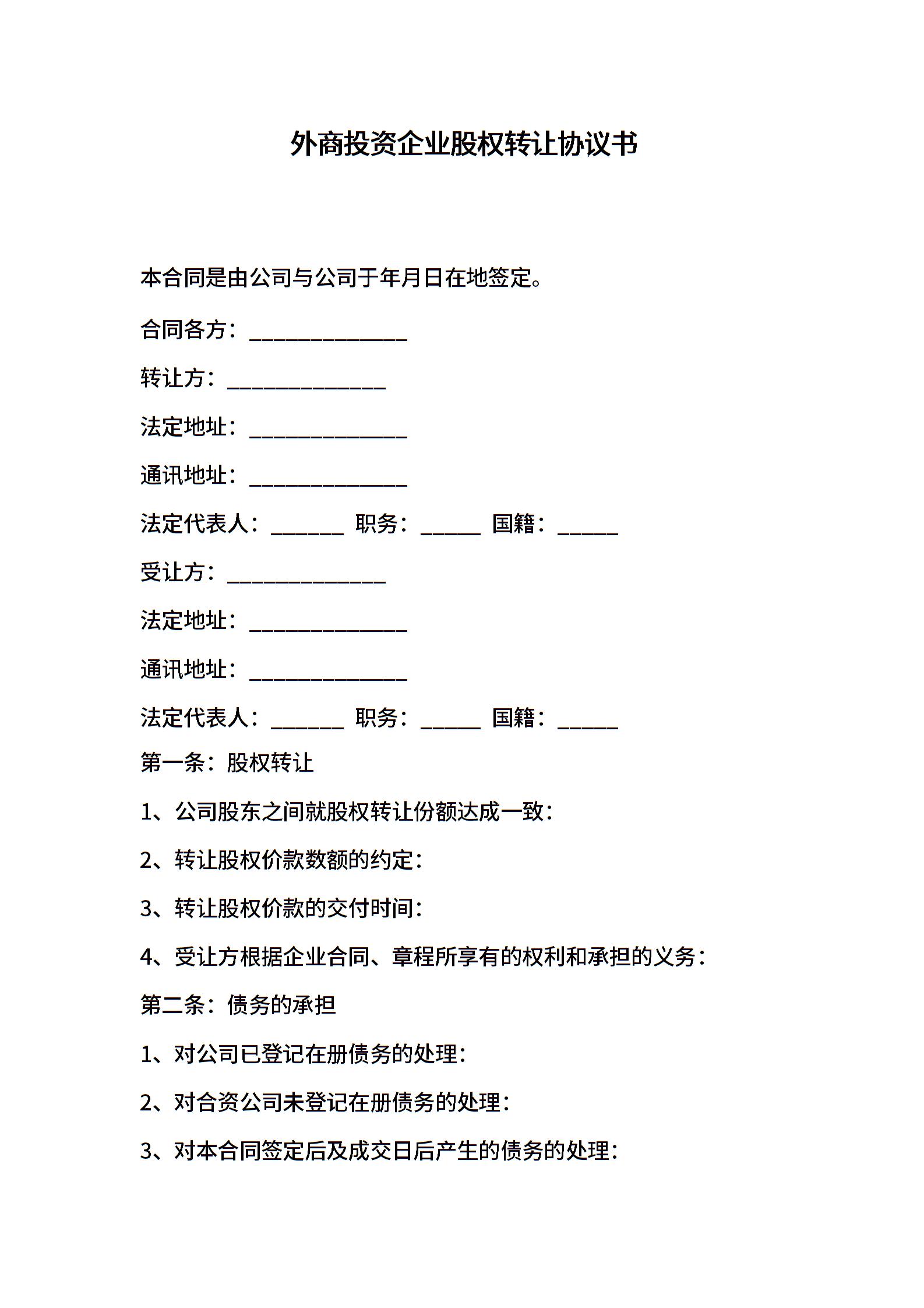 外商投资企业股权转让协议书