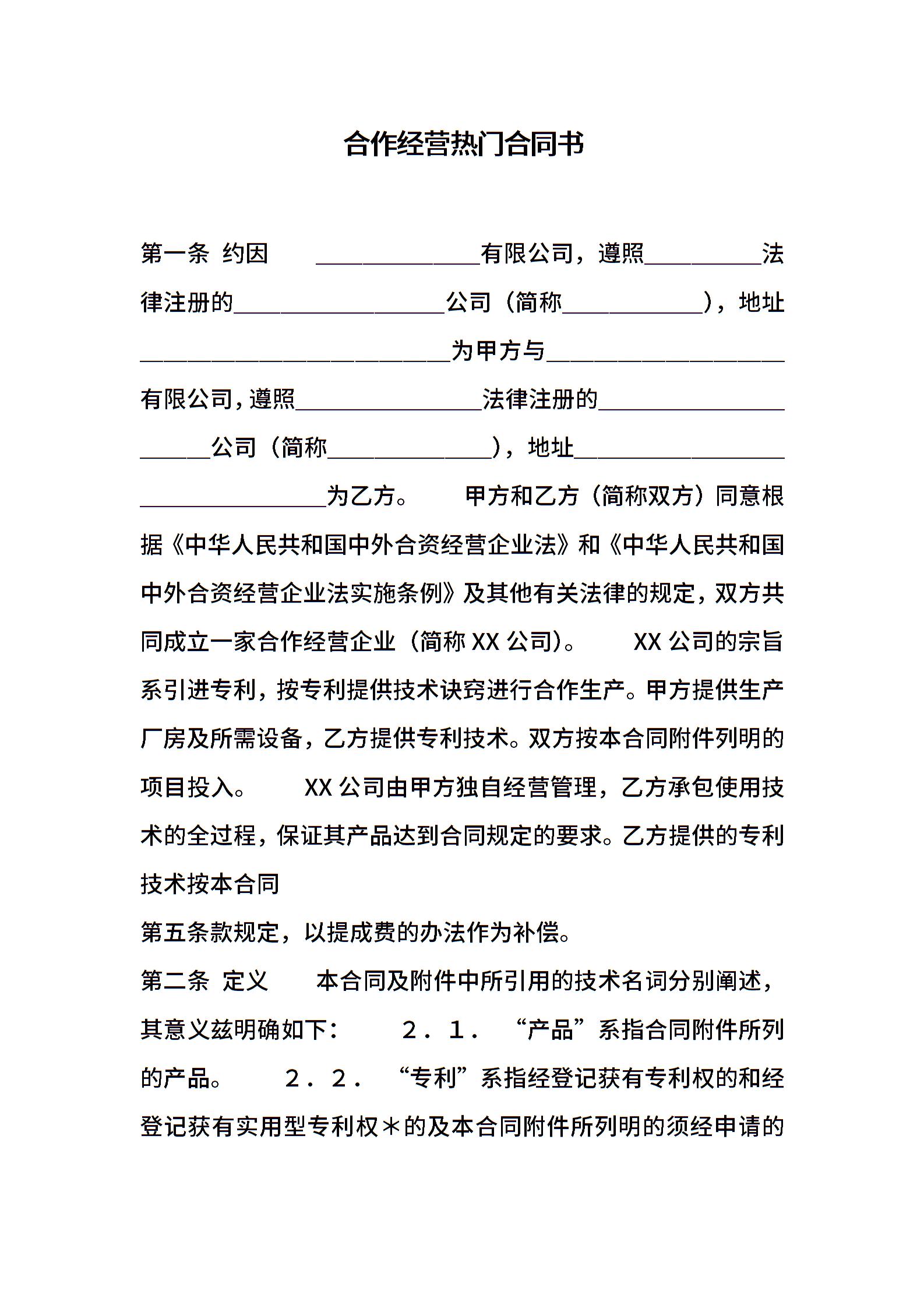 合作经营热门合同书