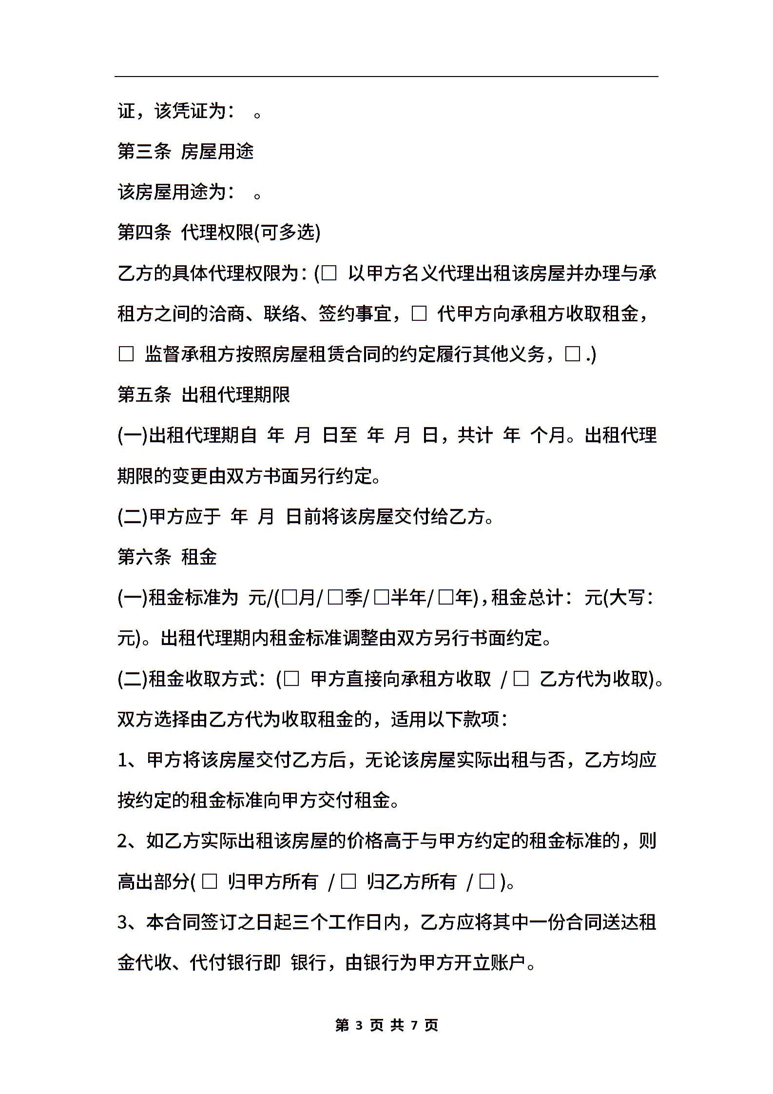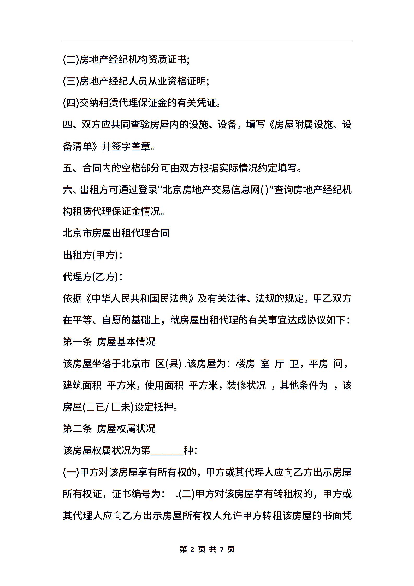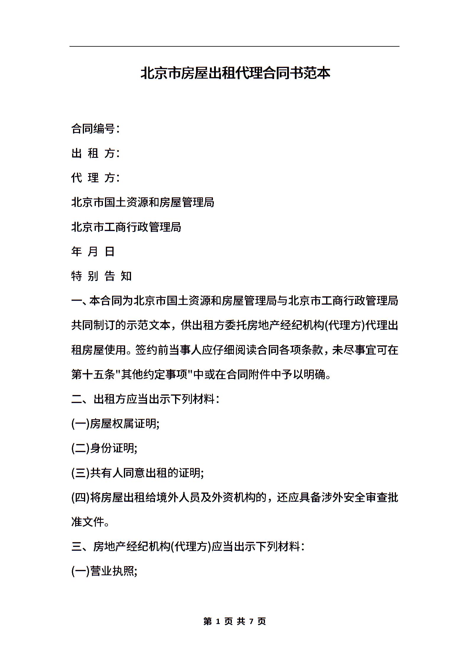 北京市房屋出租代理合同书范本