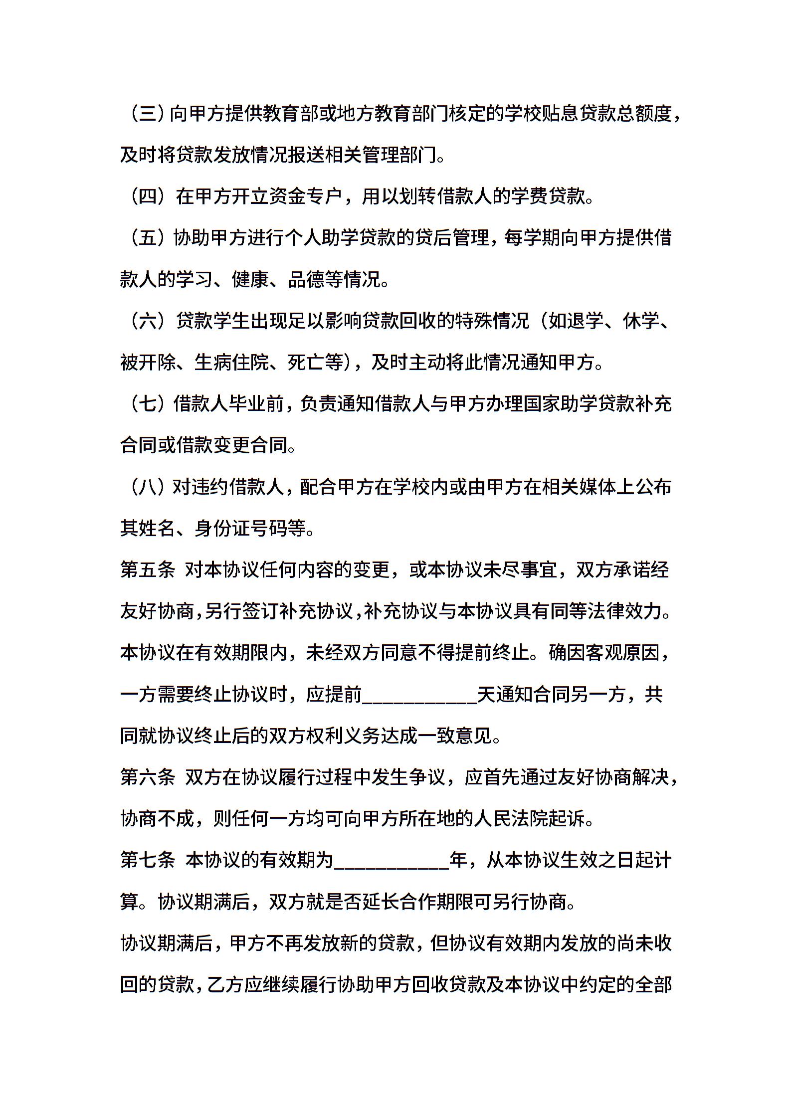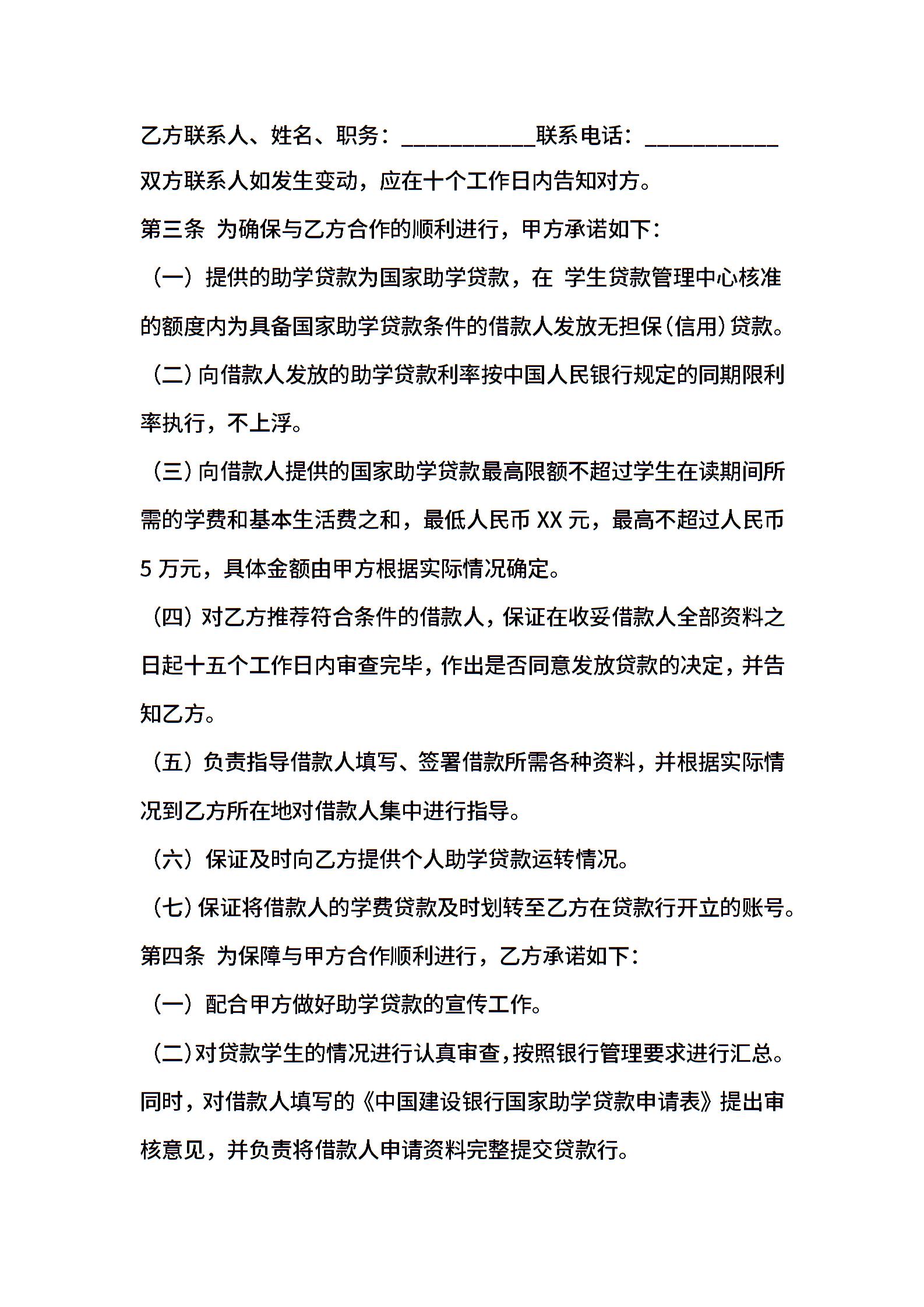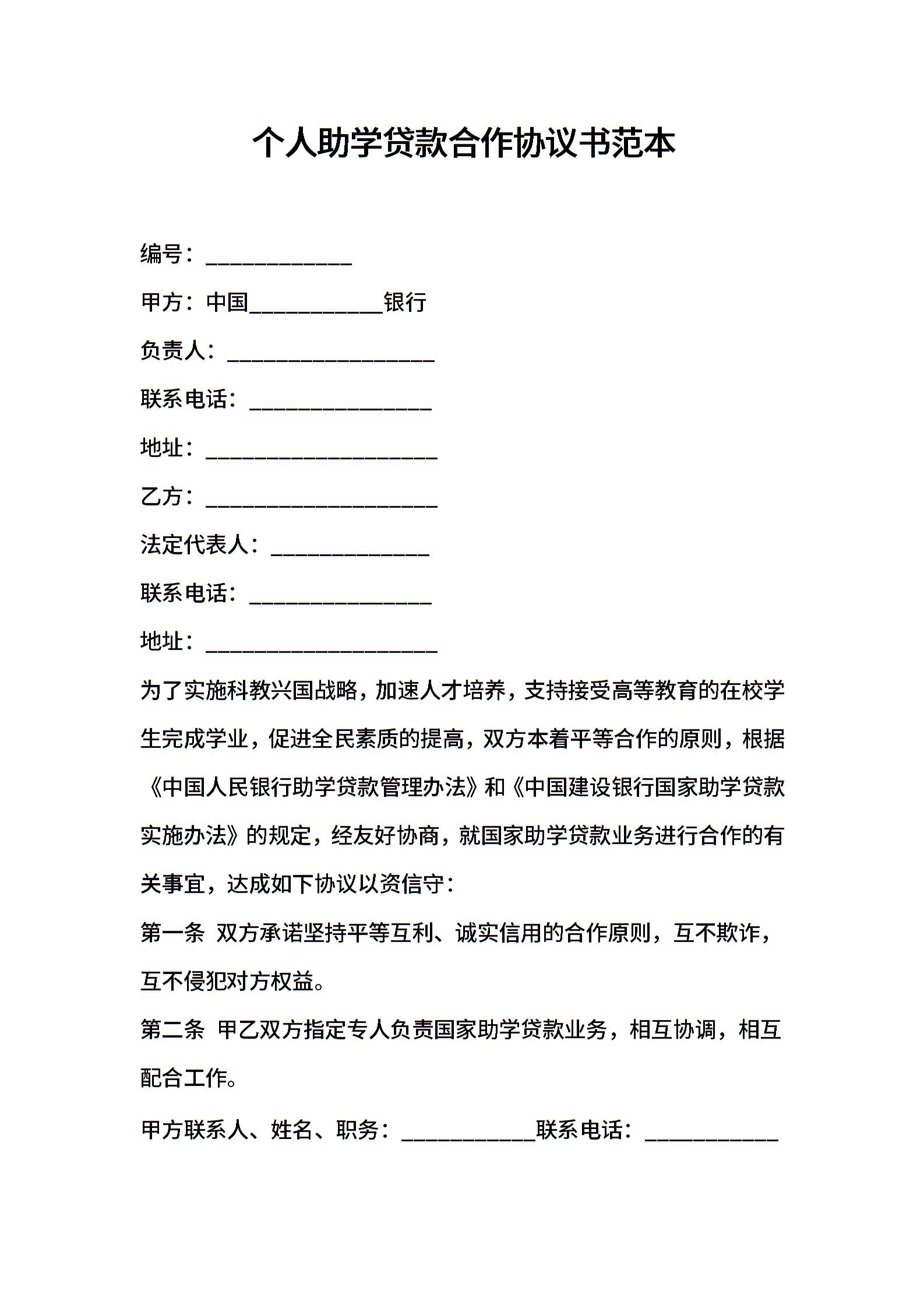 个人助学贷款合作协议书范本