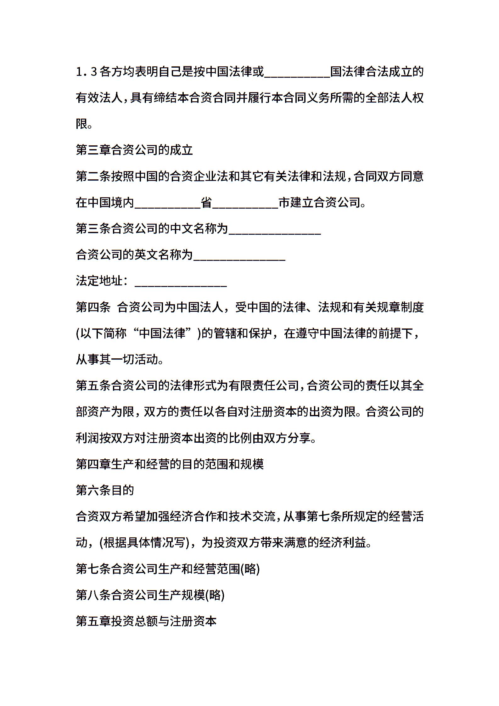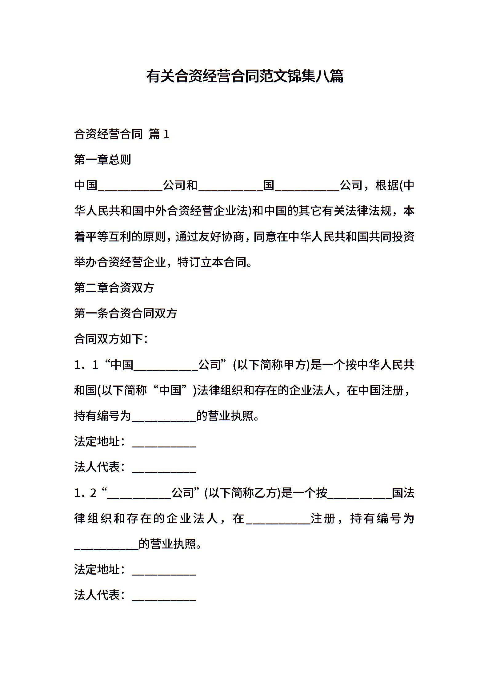 有关合资经营合同范文锦集八篇