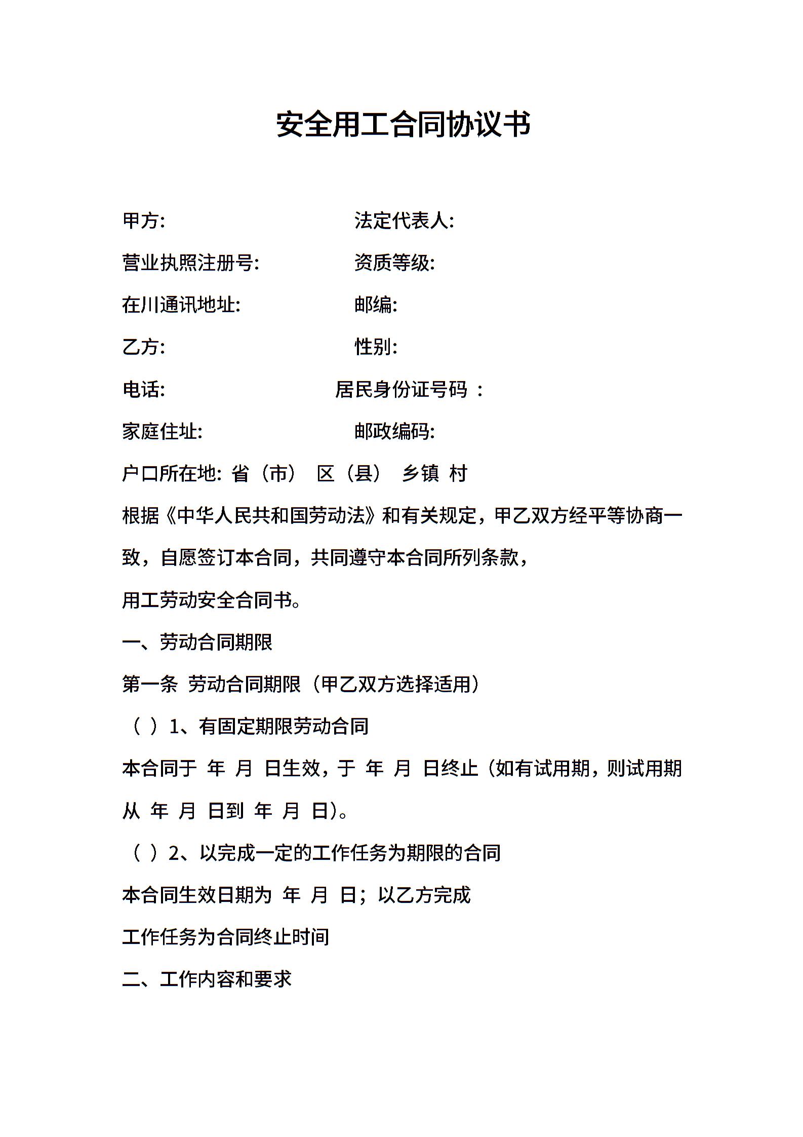 2021年安全用工合同协议书