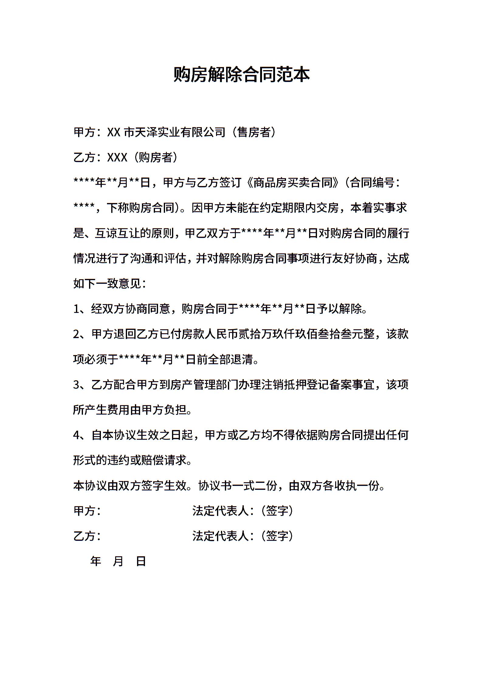 购房解除合同范本