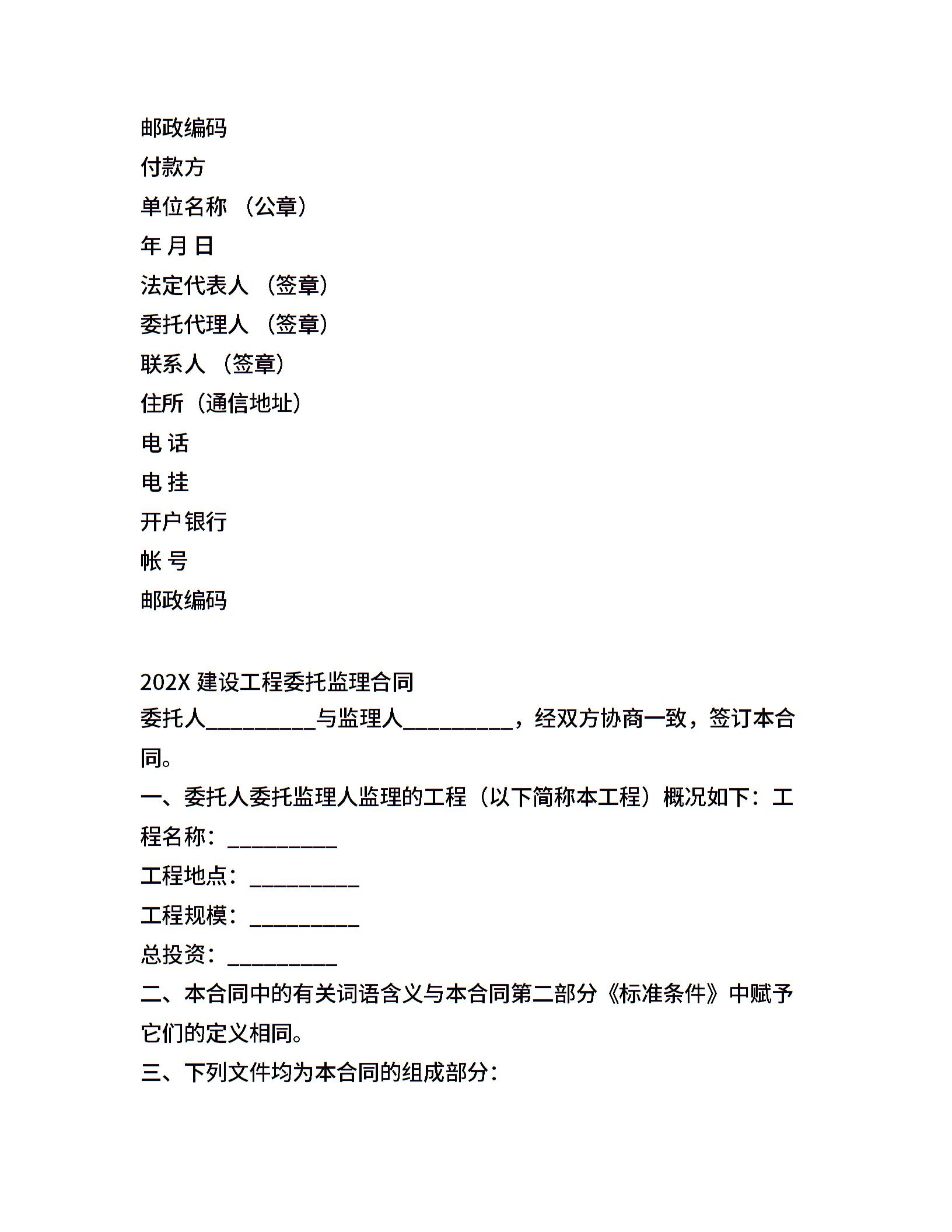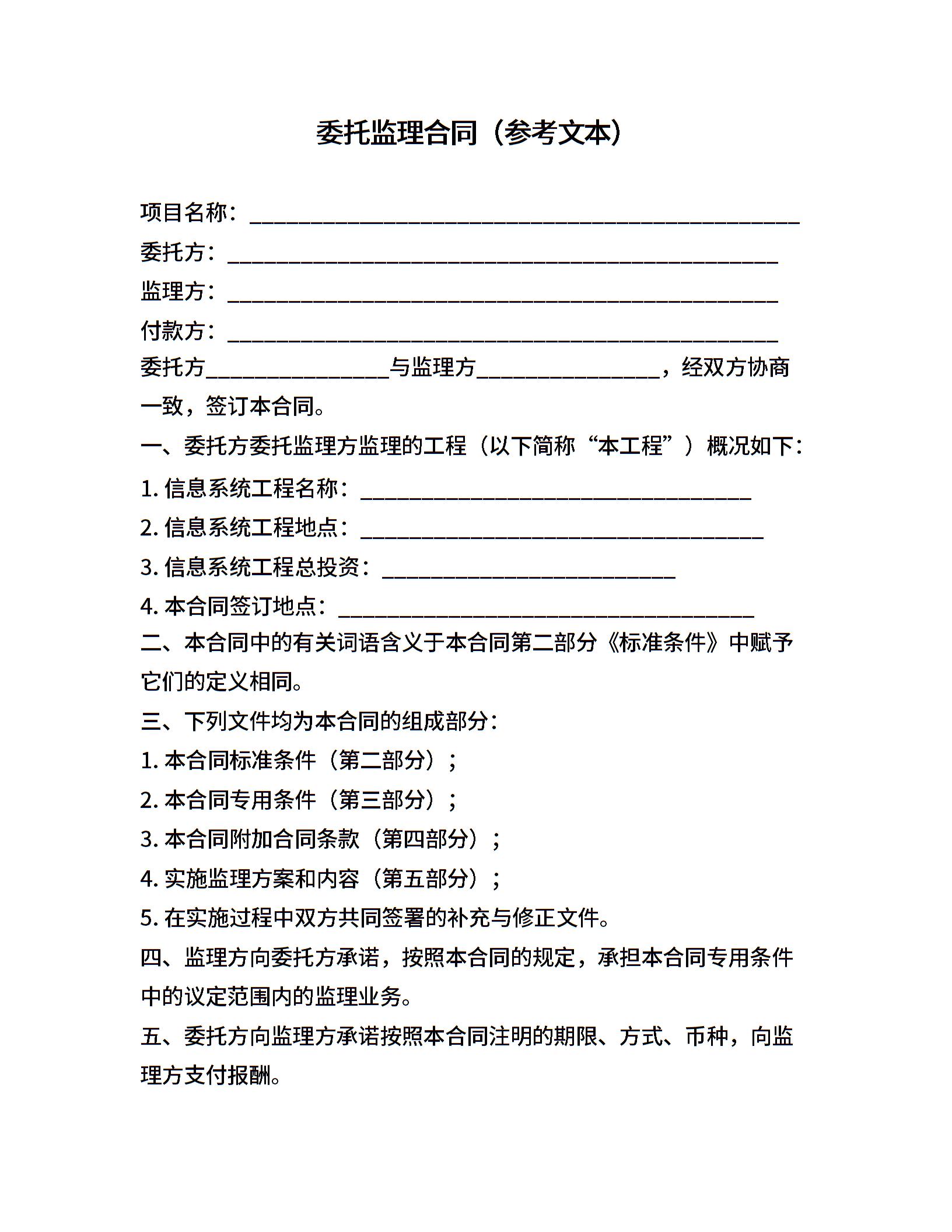 委托监理合同(参考文本)