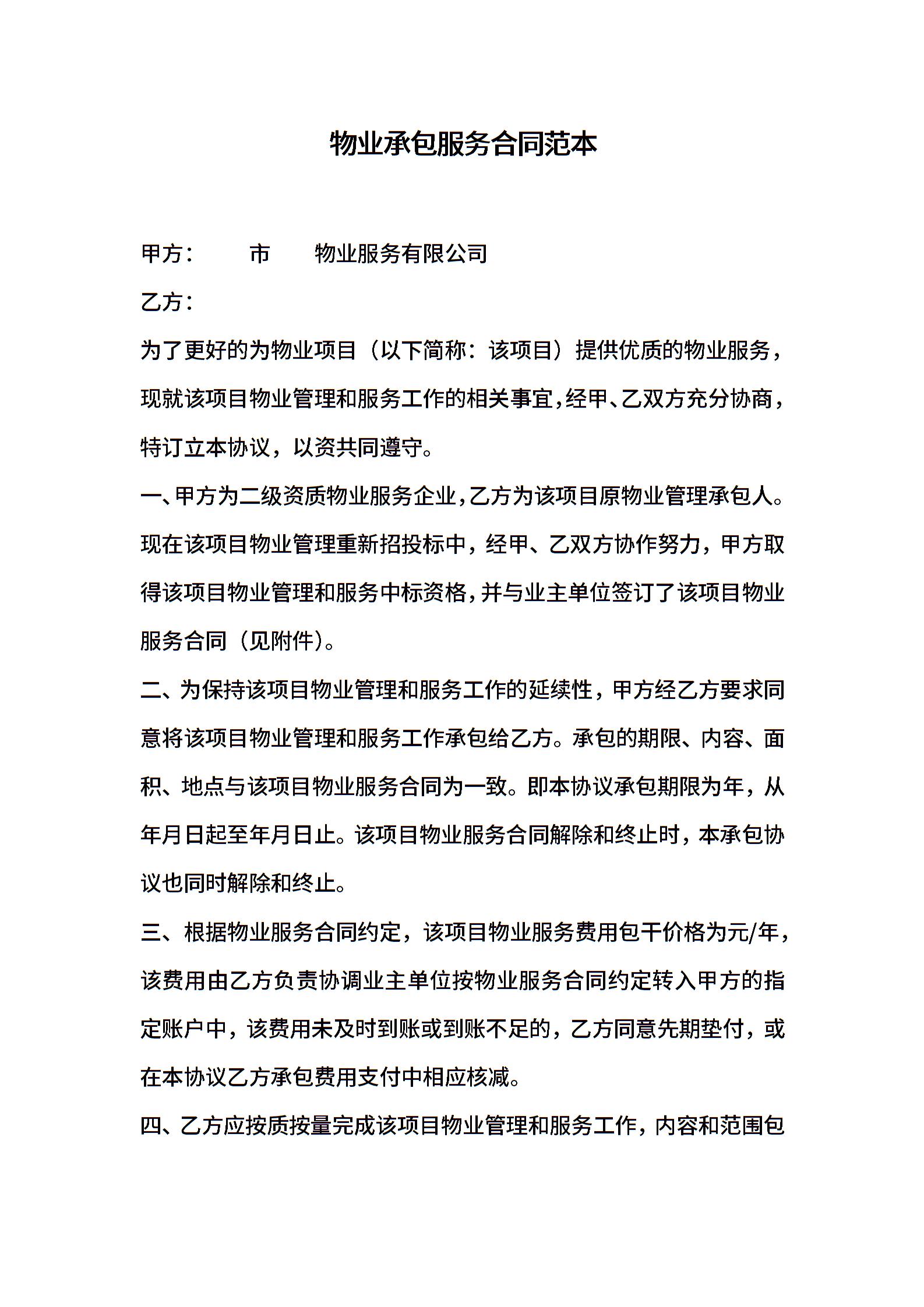 物业承包服务合同范本