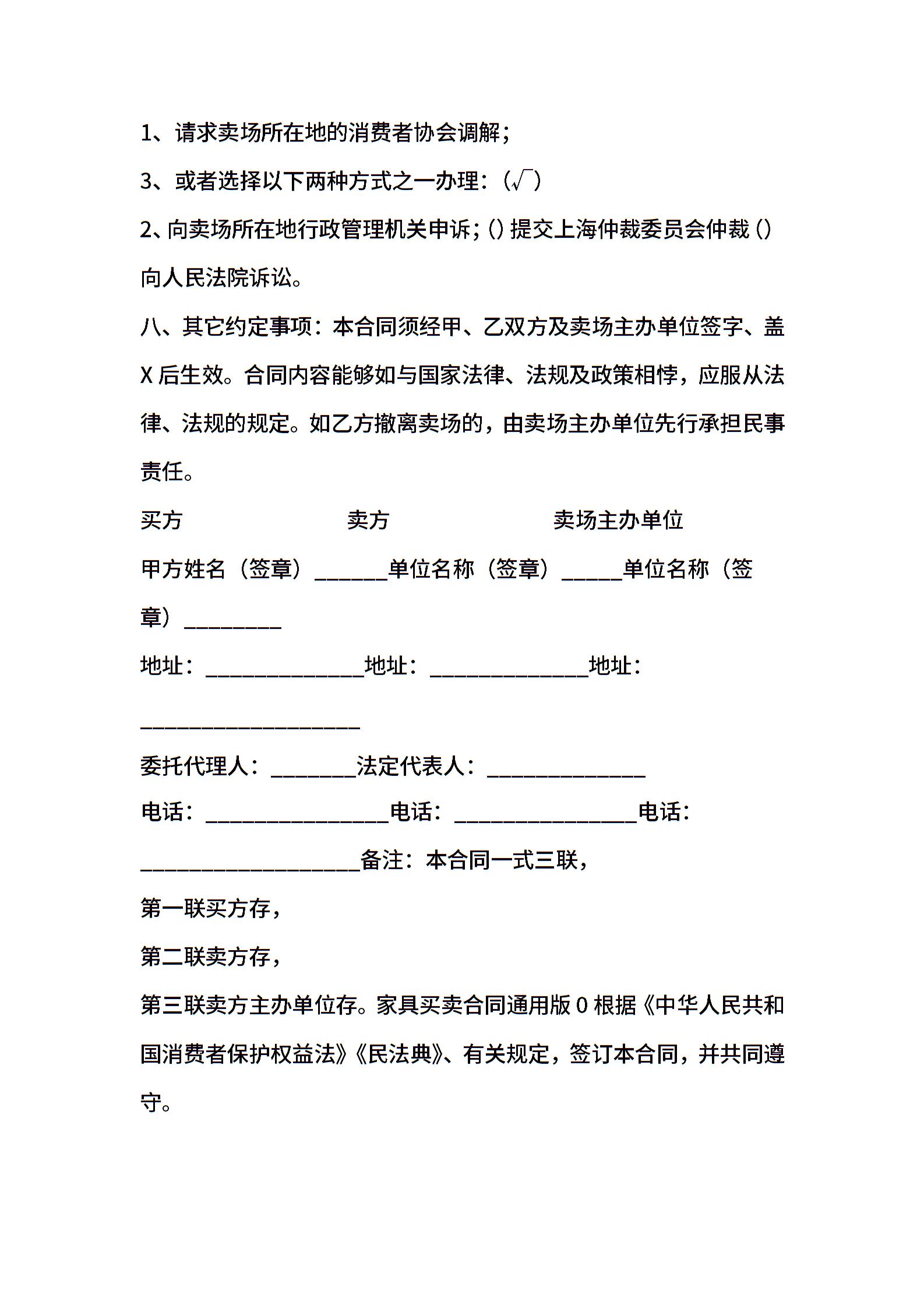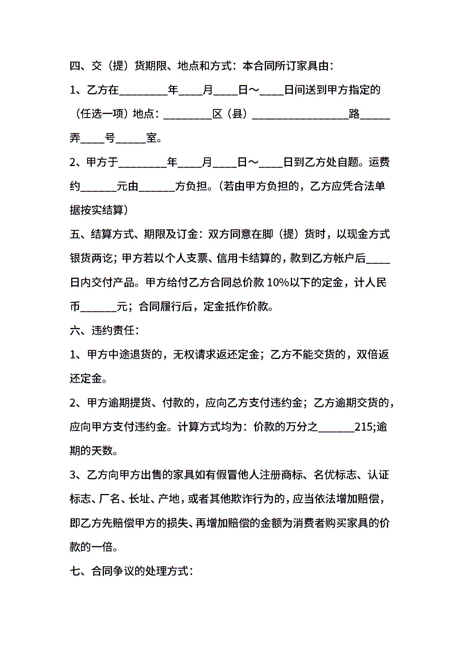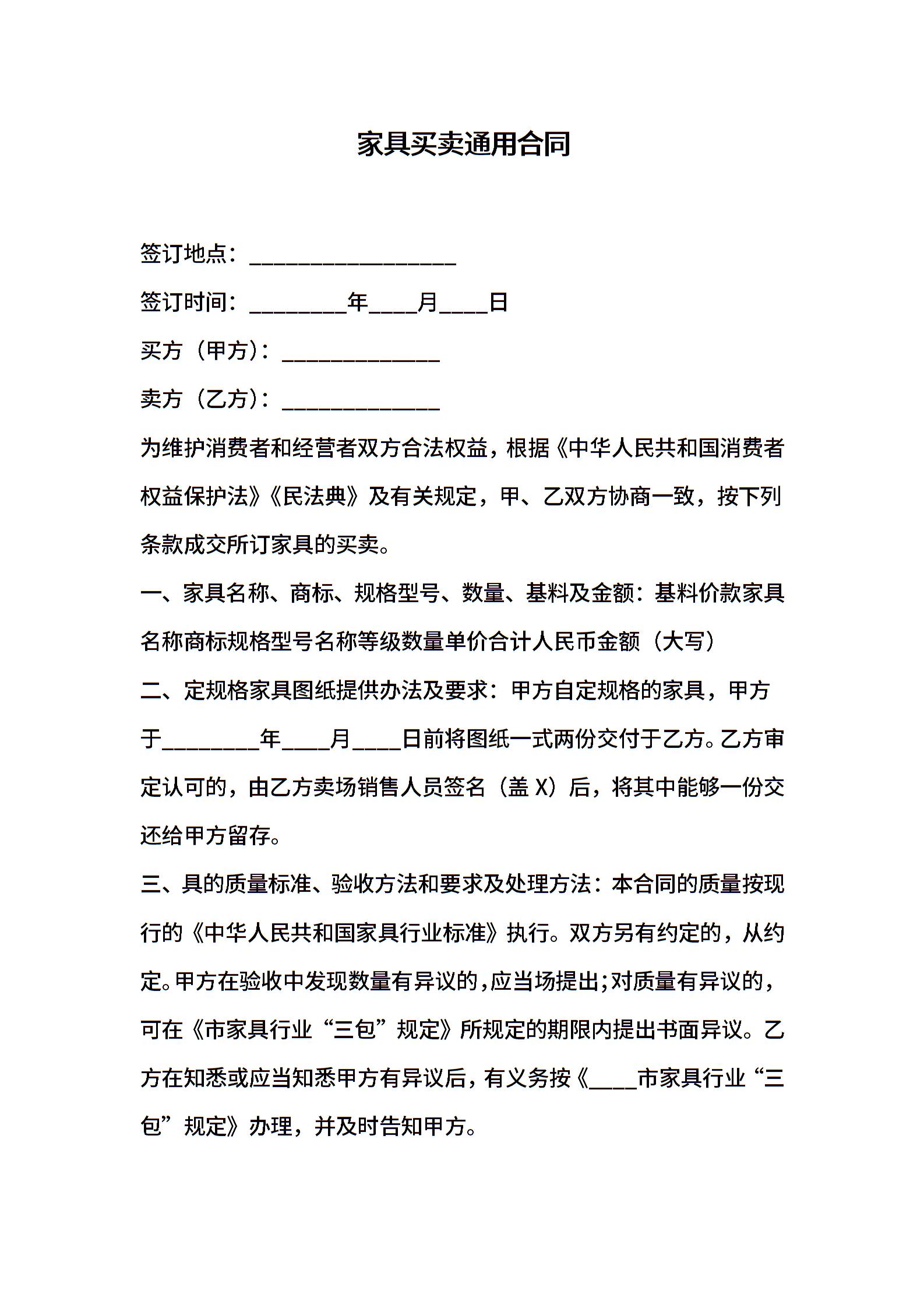 家具买卖通用合同