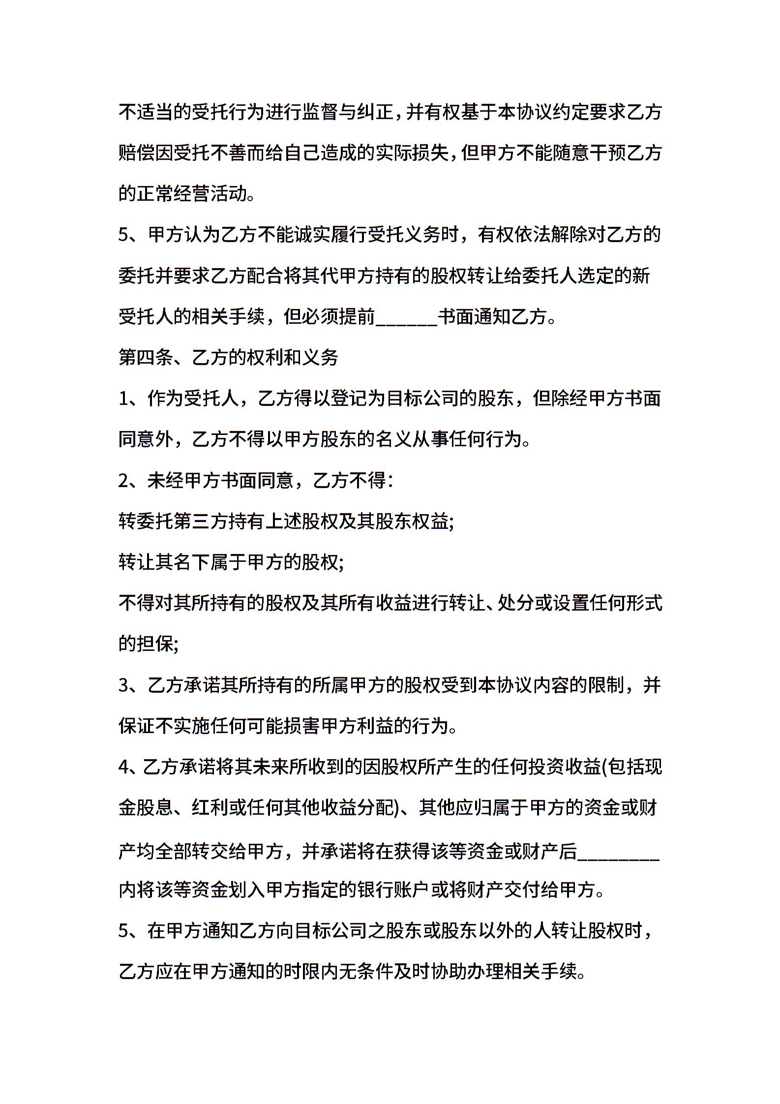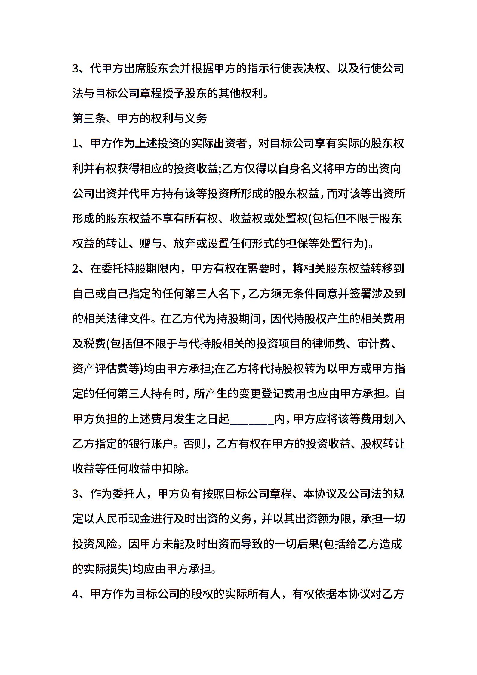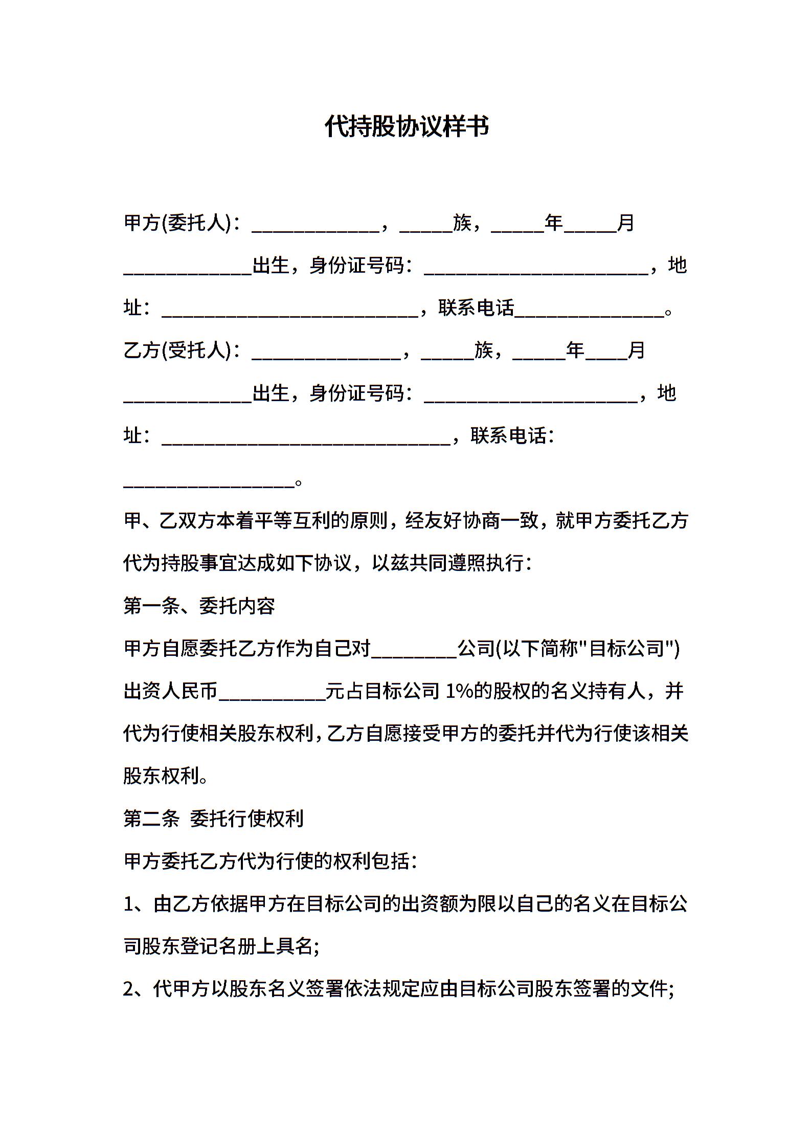 代持股协议样书
