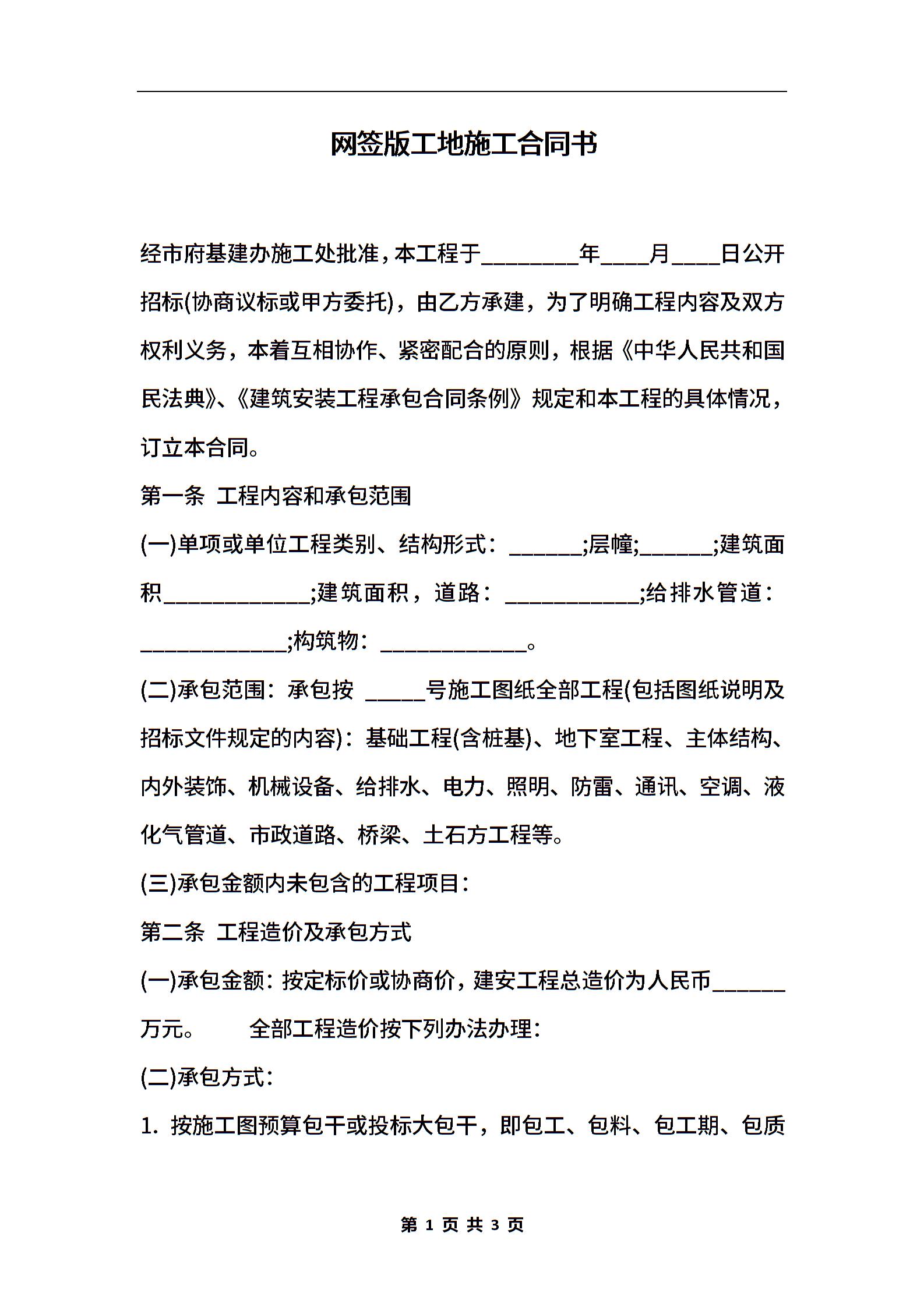 网签版工地施工合同书