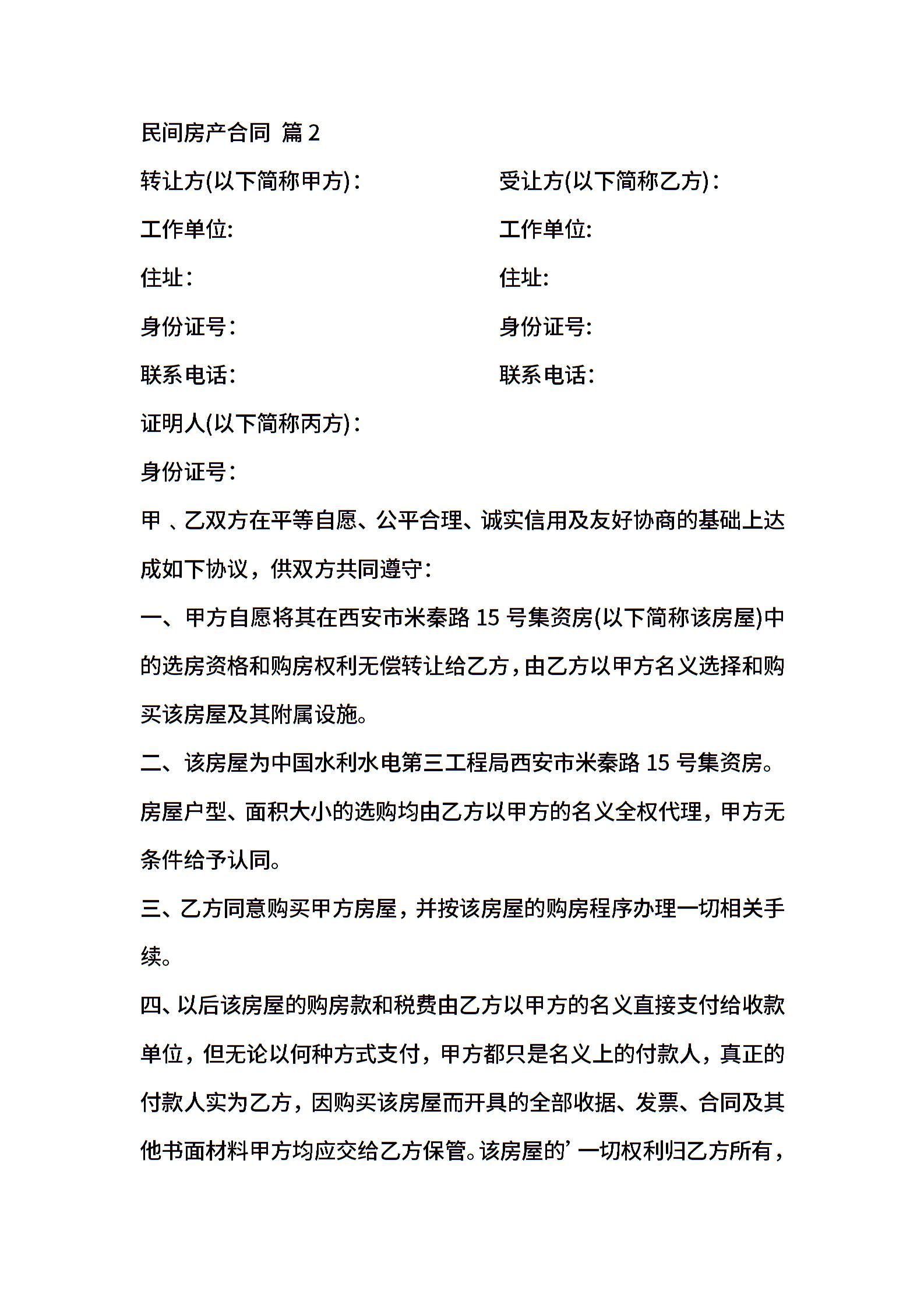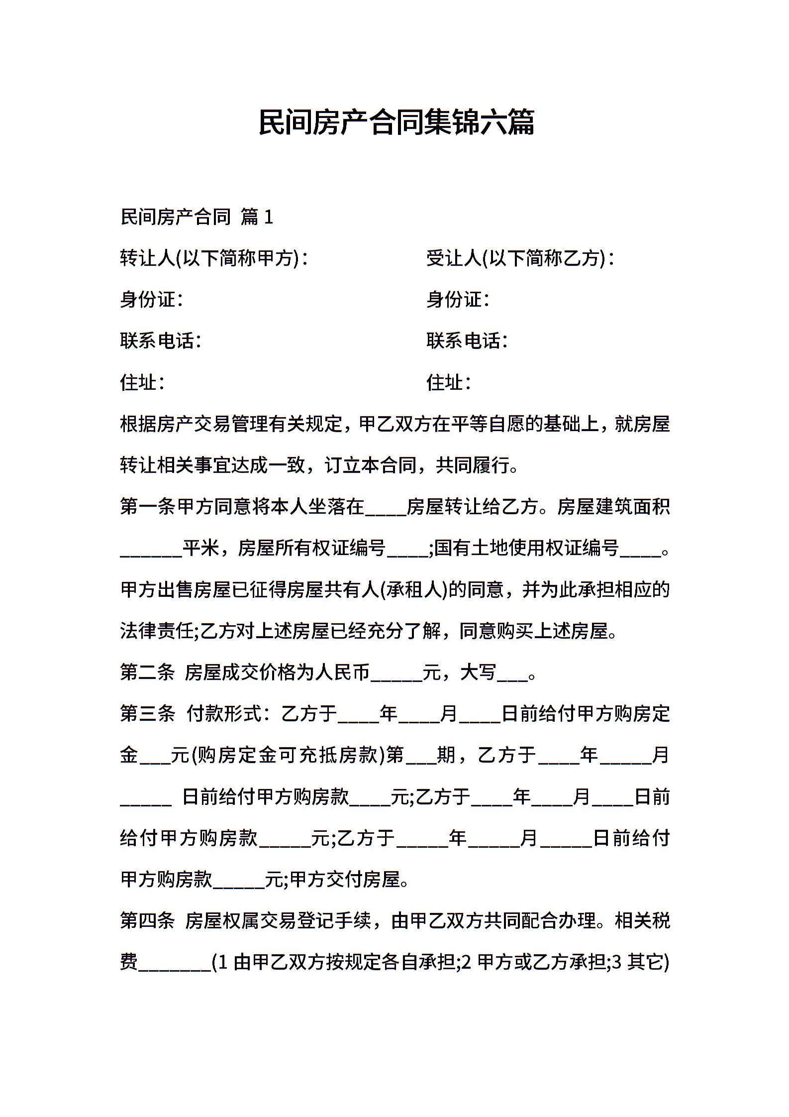 民间房产合同集锦六篇
