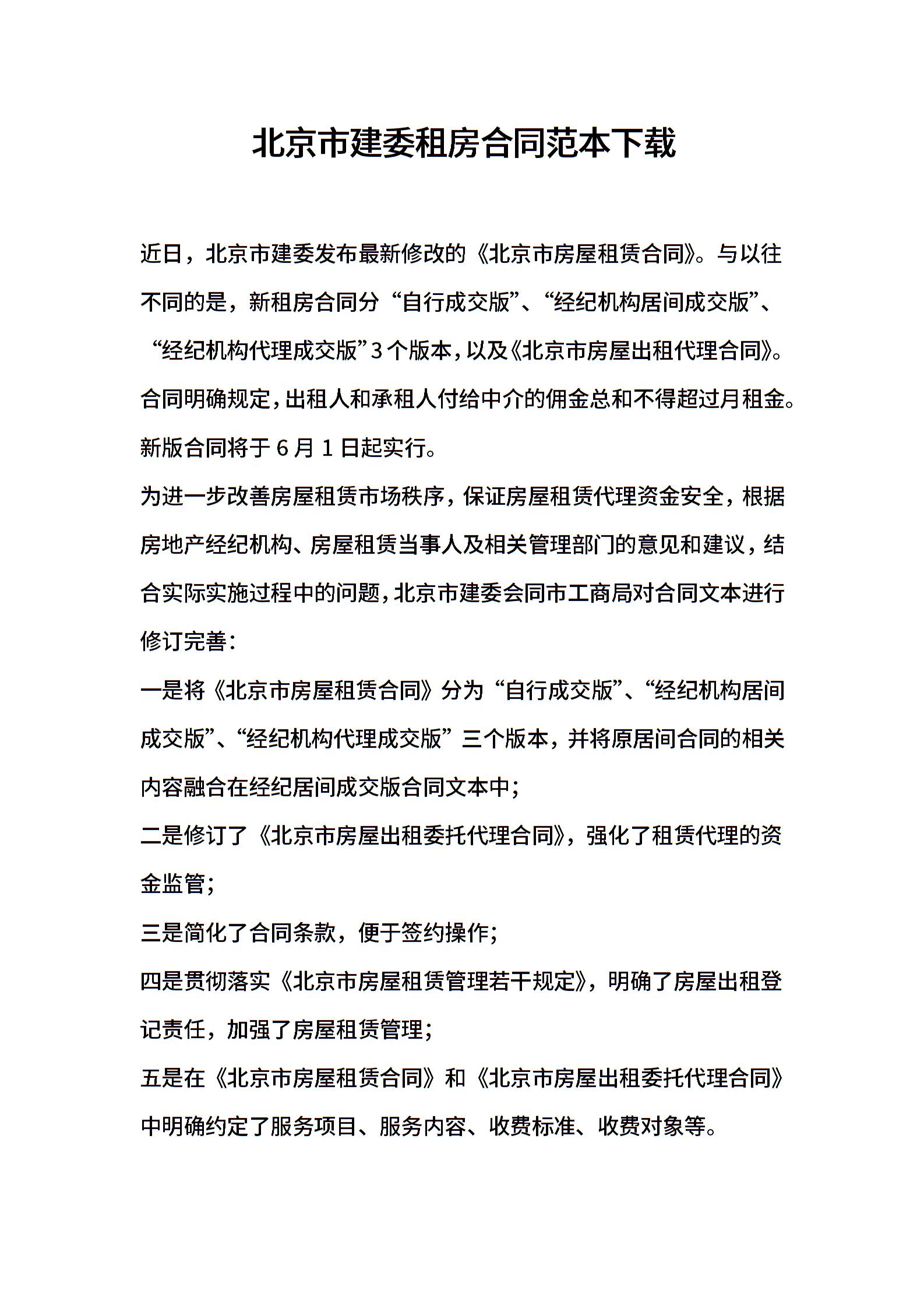2021年北京市建委租房合同范本下载