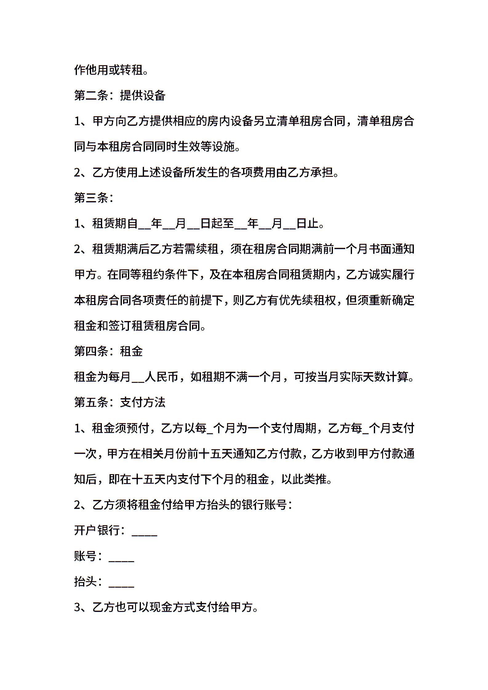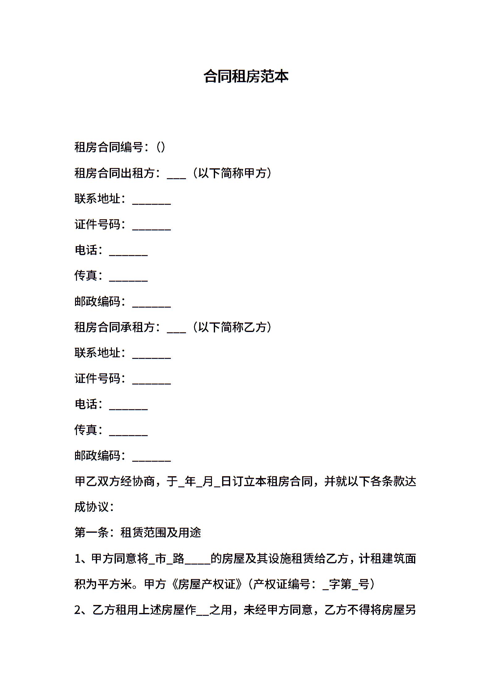 合同租房范本