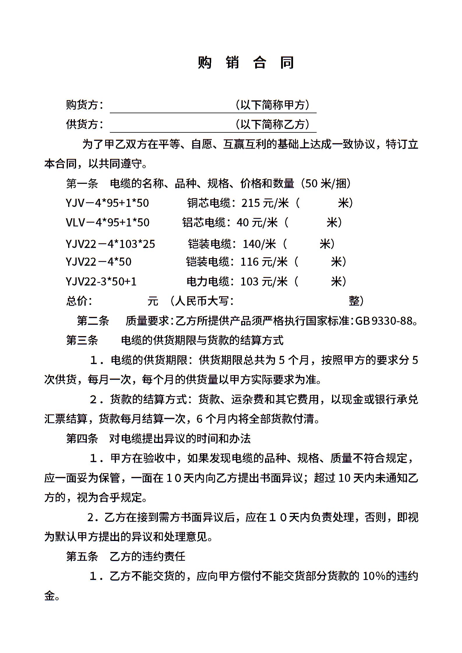 当前位置:量子办公 > 合同模板 > 购销合同 >