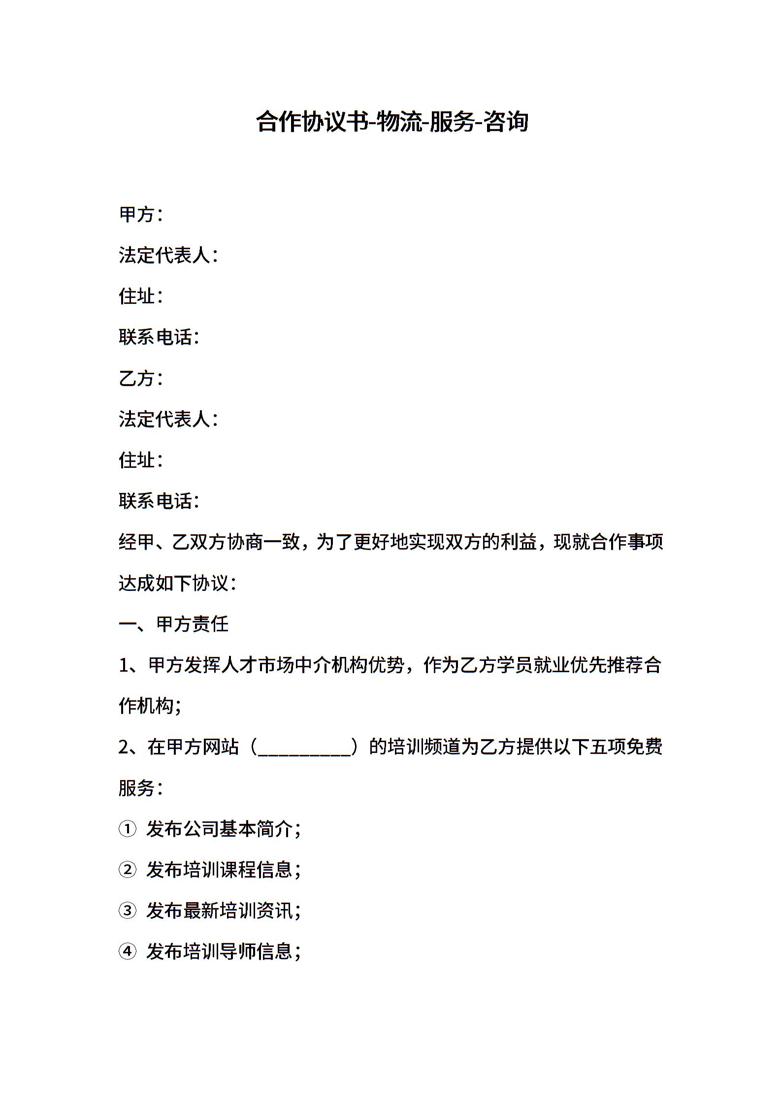 合作协议书-物流-服务-咨询