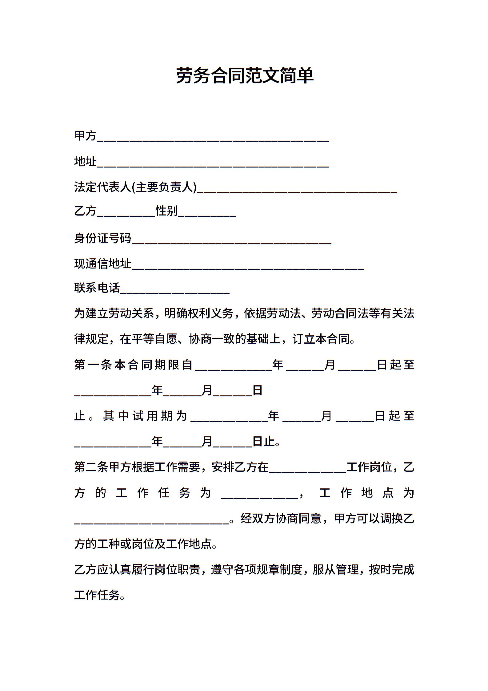 当前位置:量子办公 > 合同模板 > 劳务合同 >