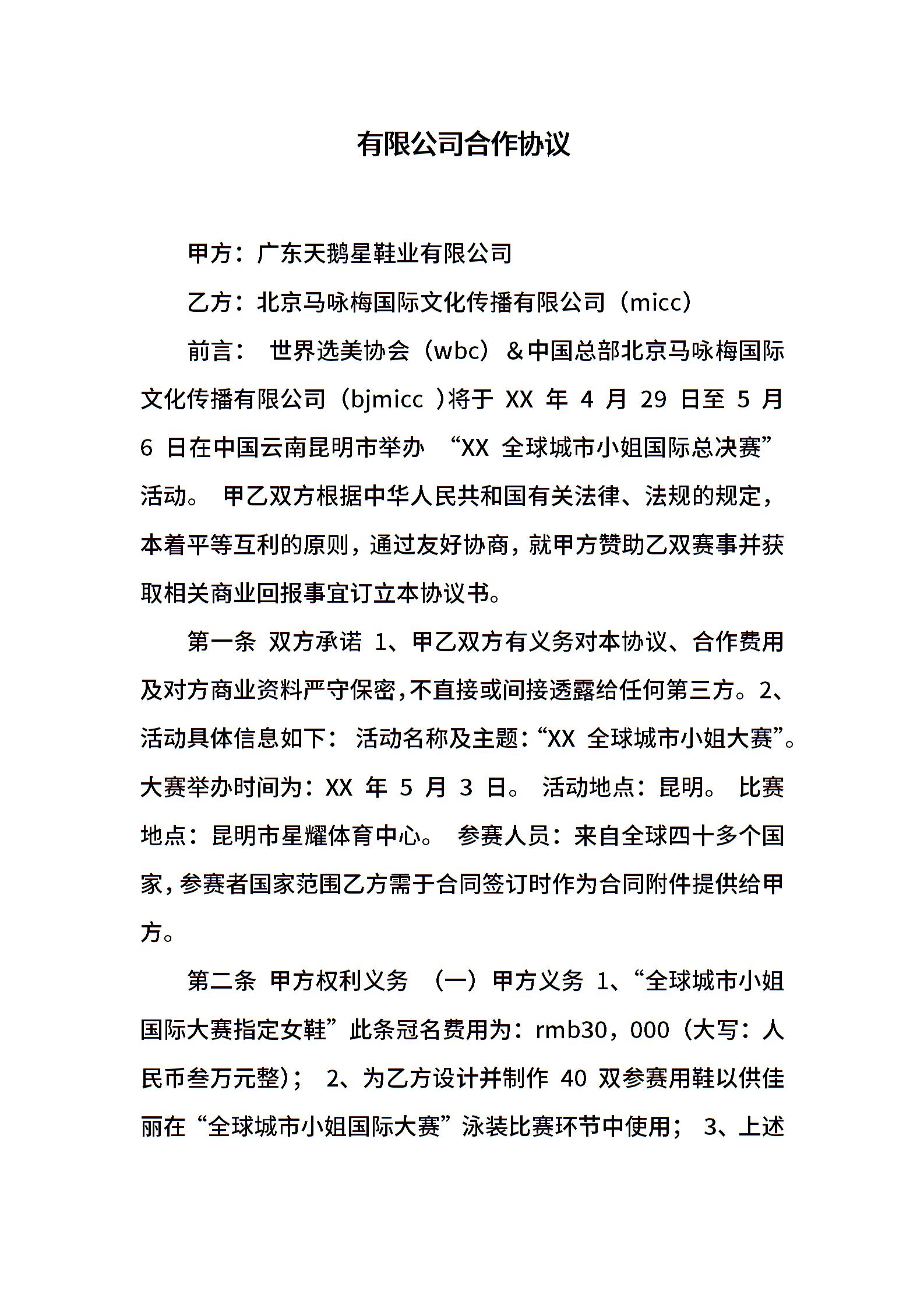 当前位置:量子办公 > 合同模板 > 合作合同 >