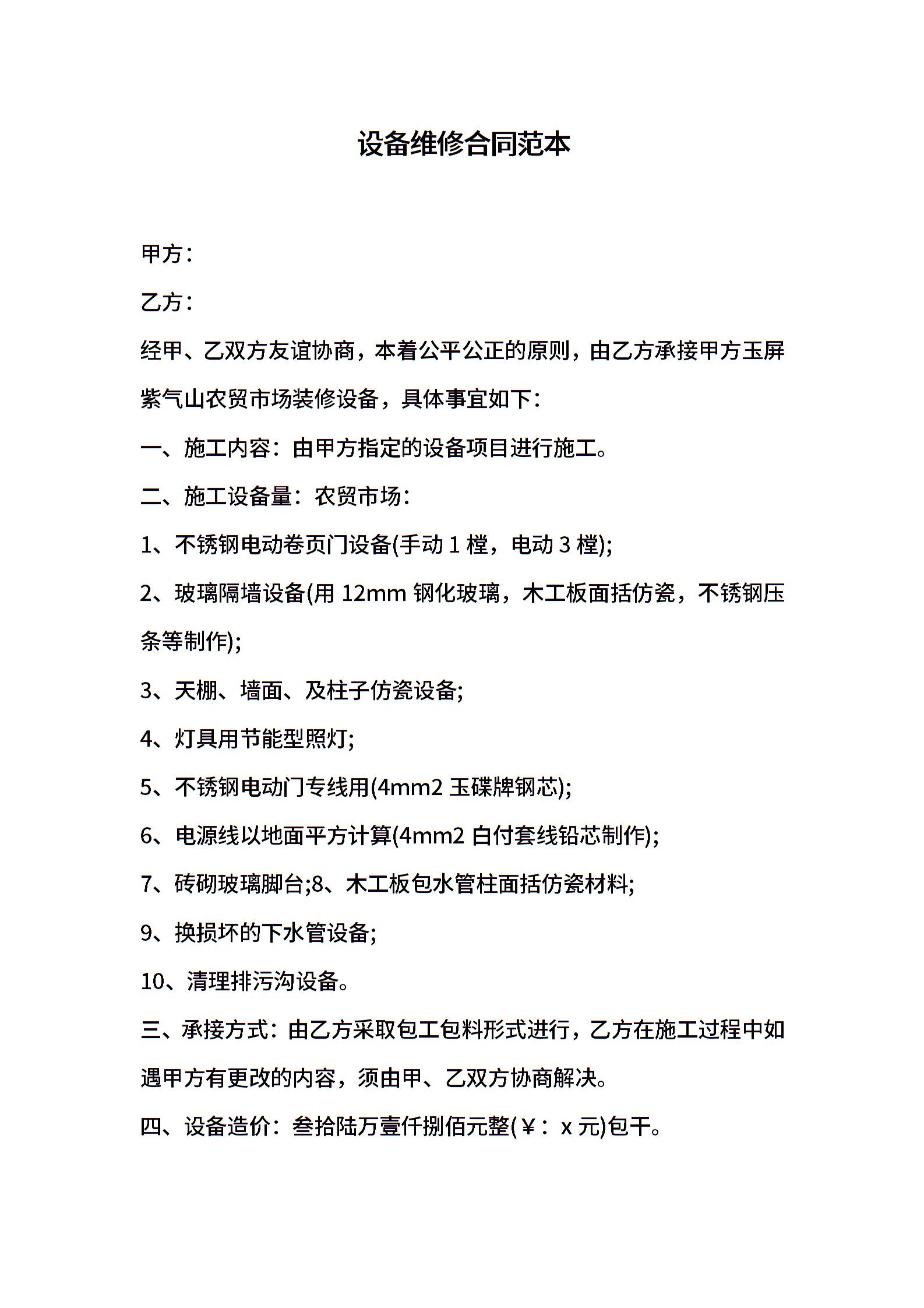 当前位置:量子办公 > 合同模板 > 维修合同 >