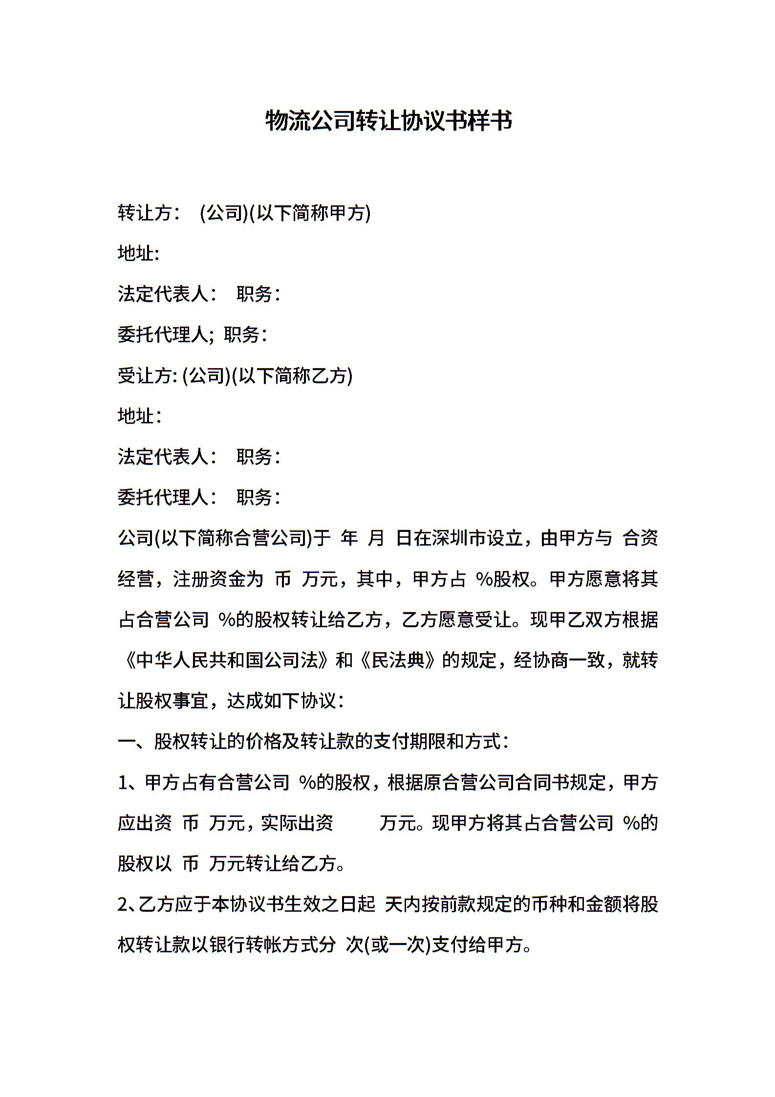 物流公司转让协议书样书