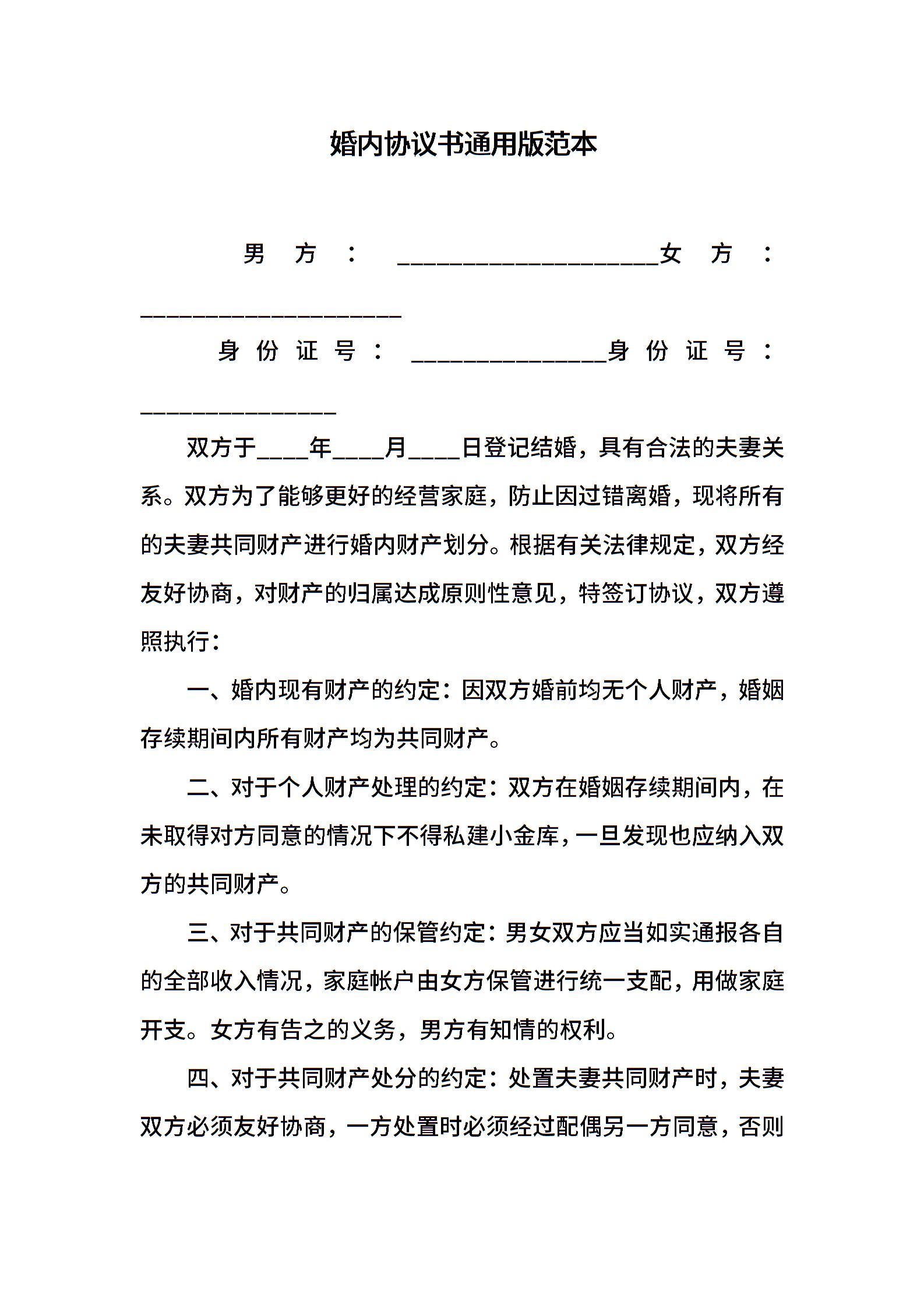 当前位置:量子办公 > 合同模板 > 婚内协议 >