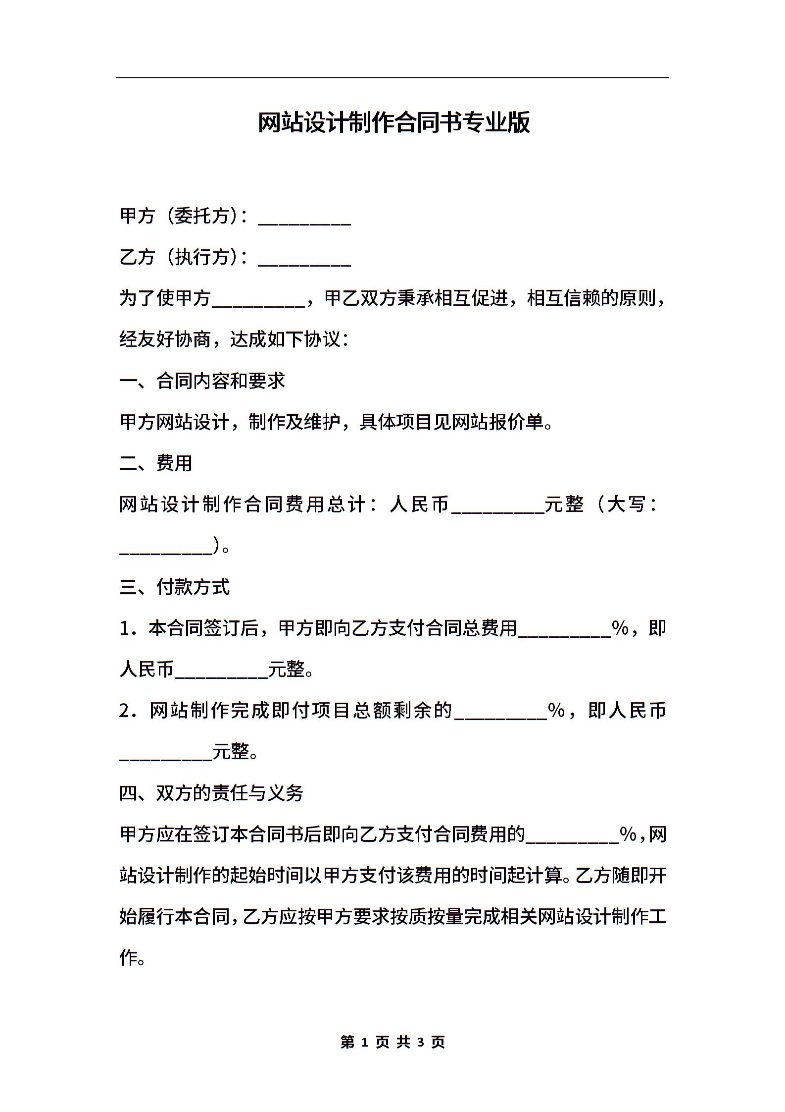 网站设计制作合同书专业版