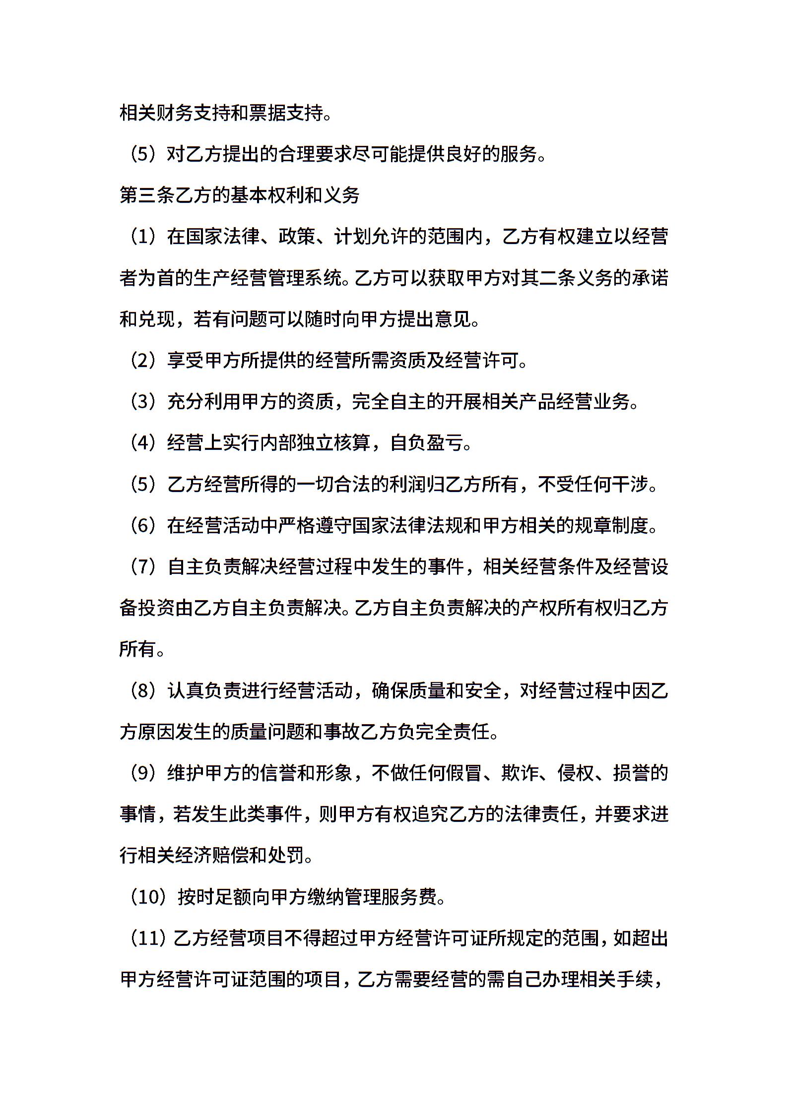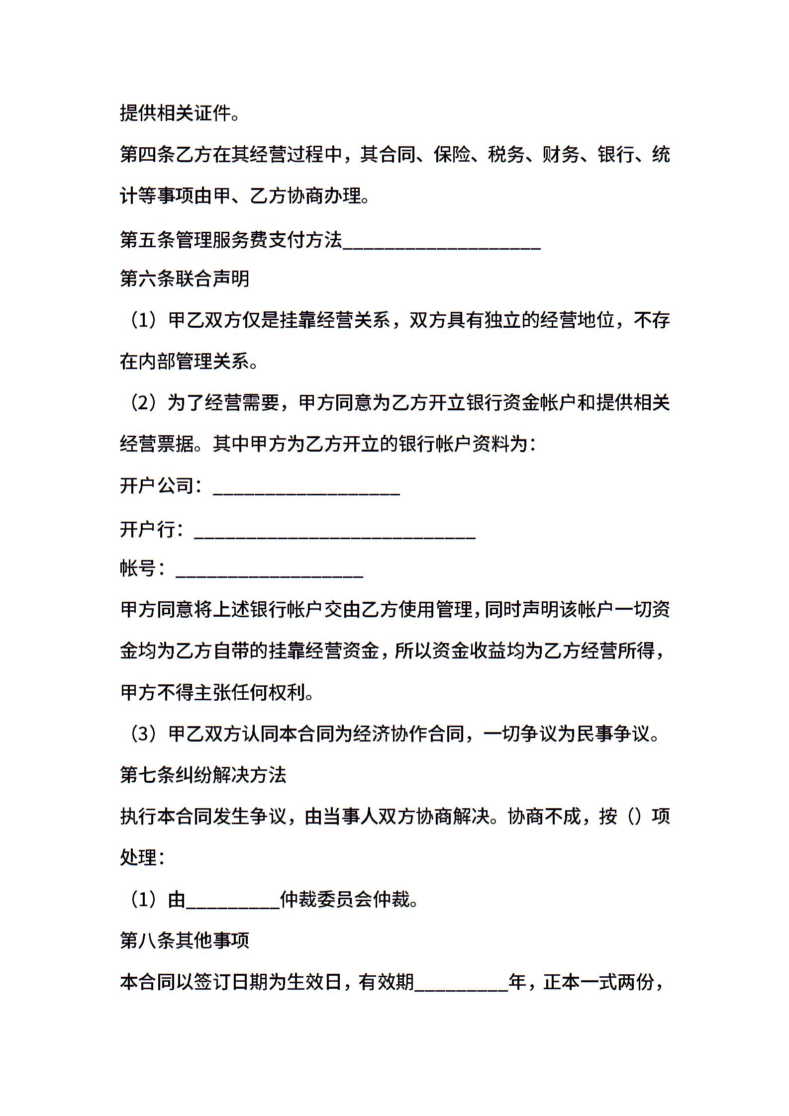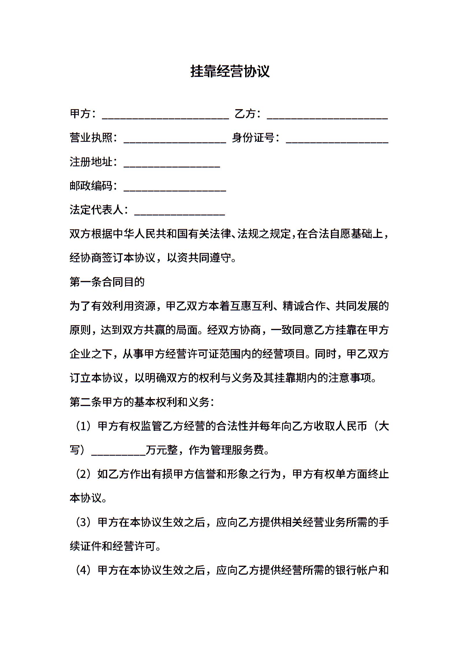 挂靠经营合同样本