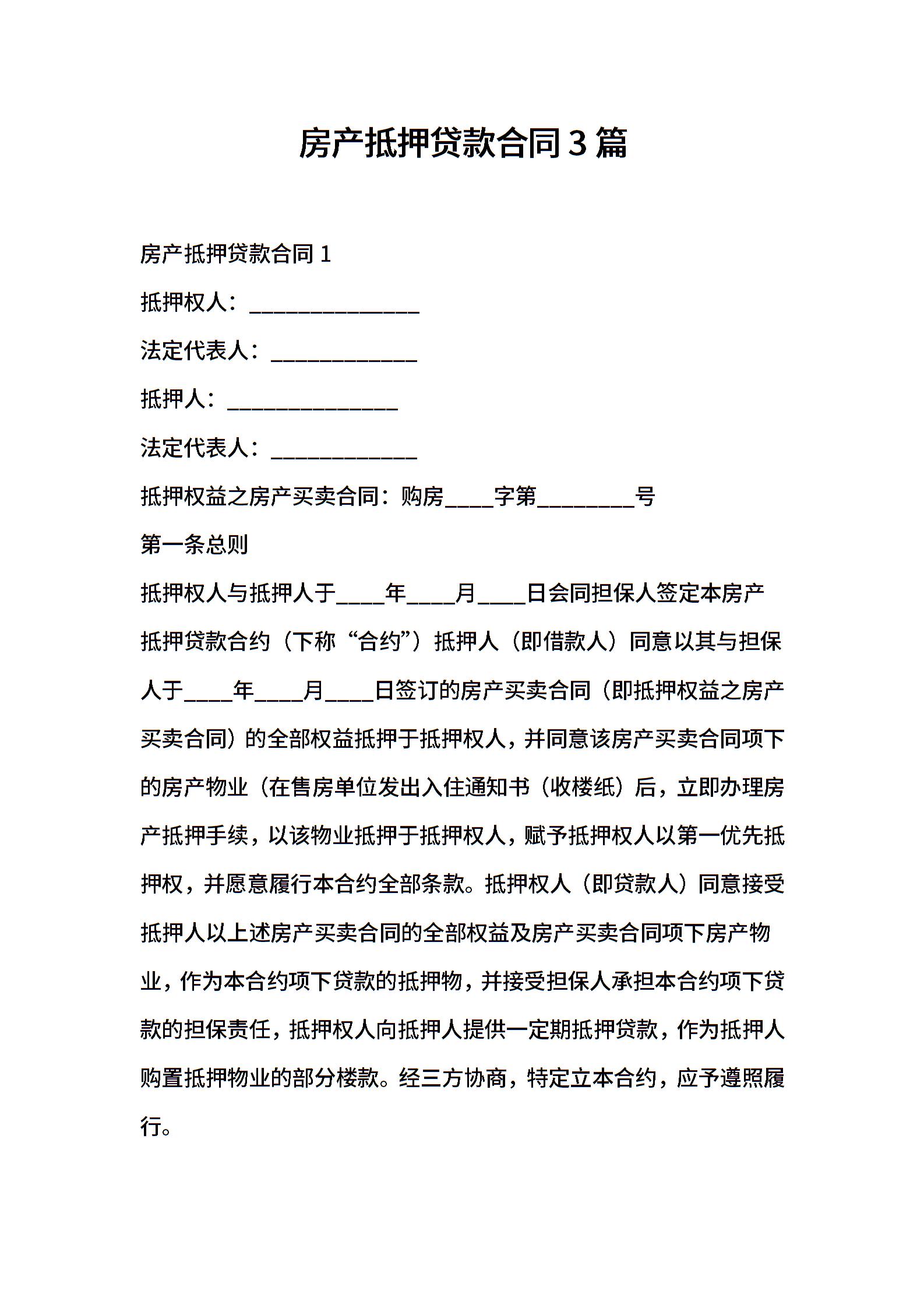 房产抵押贷款合同3篇