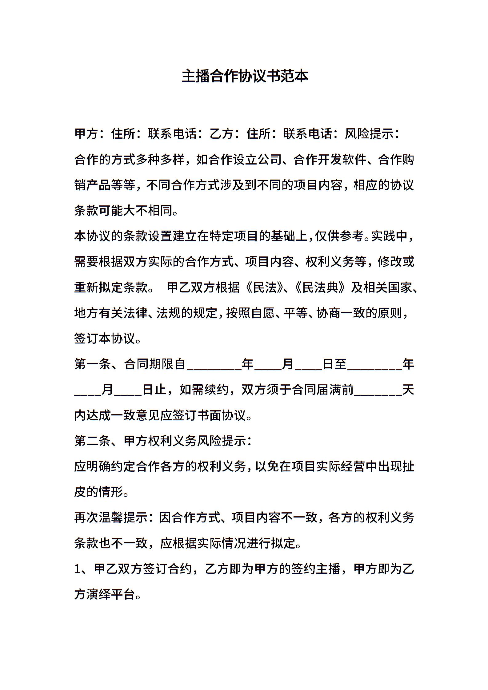 主播合作协议书范本