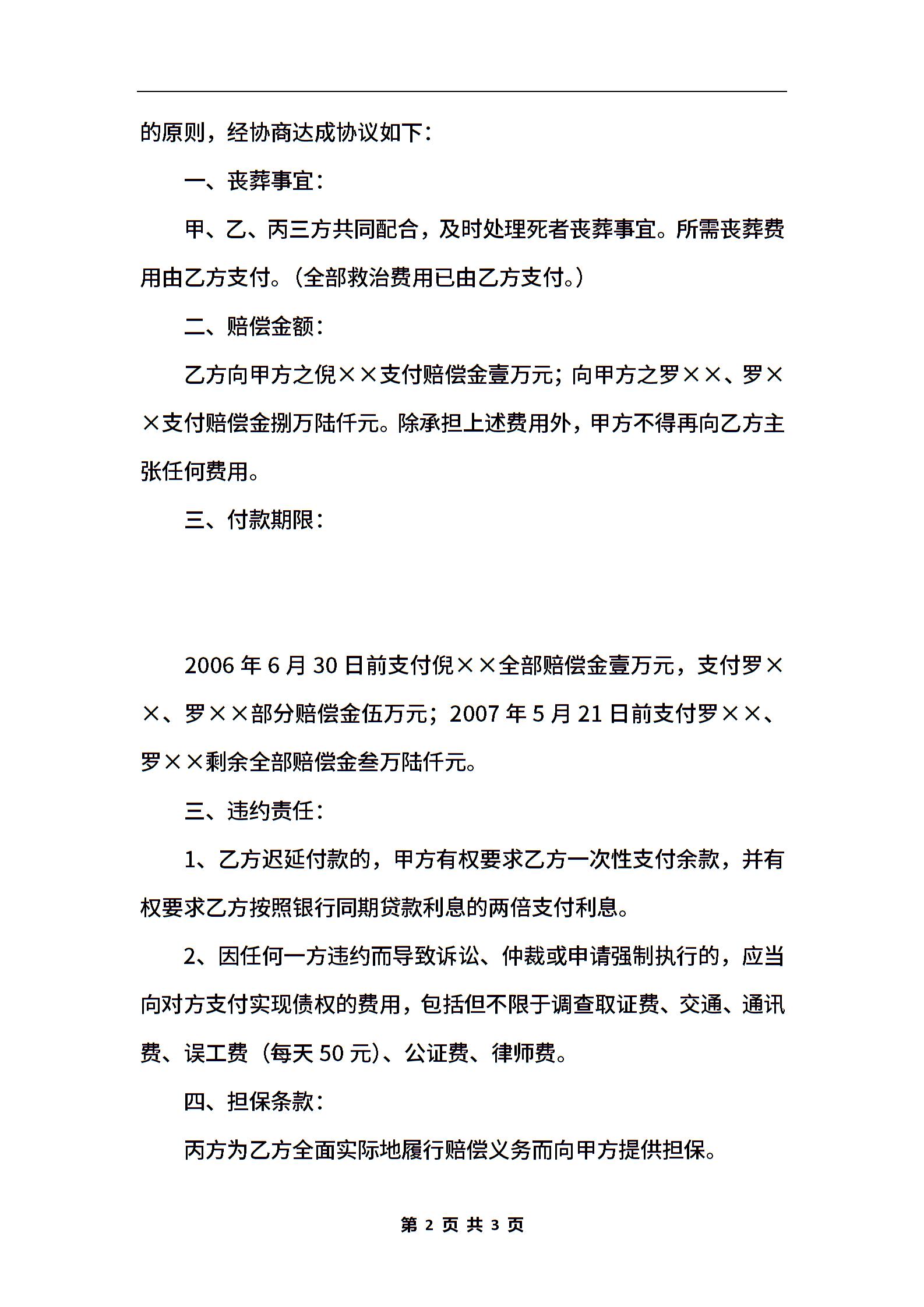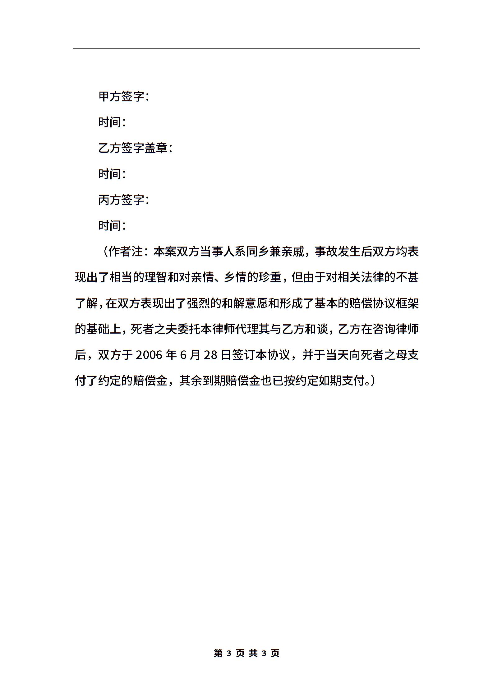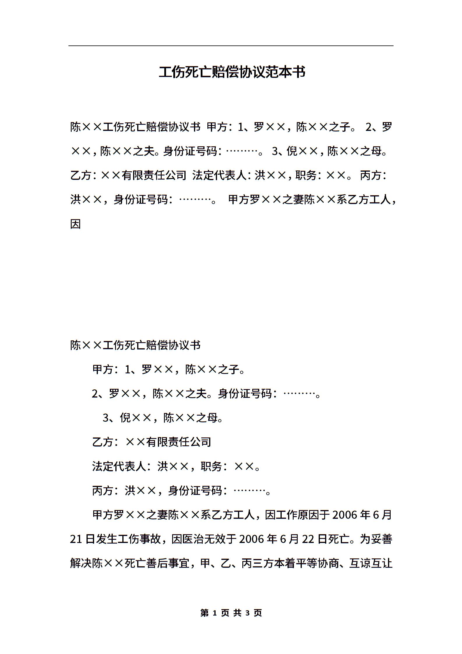 工伤死亡赔偿协议范本书