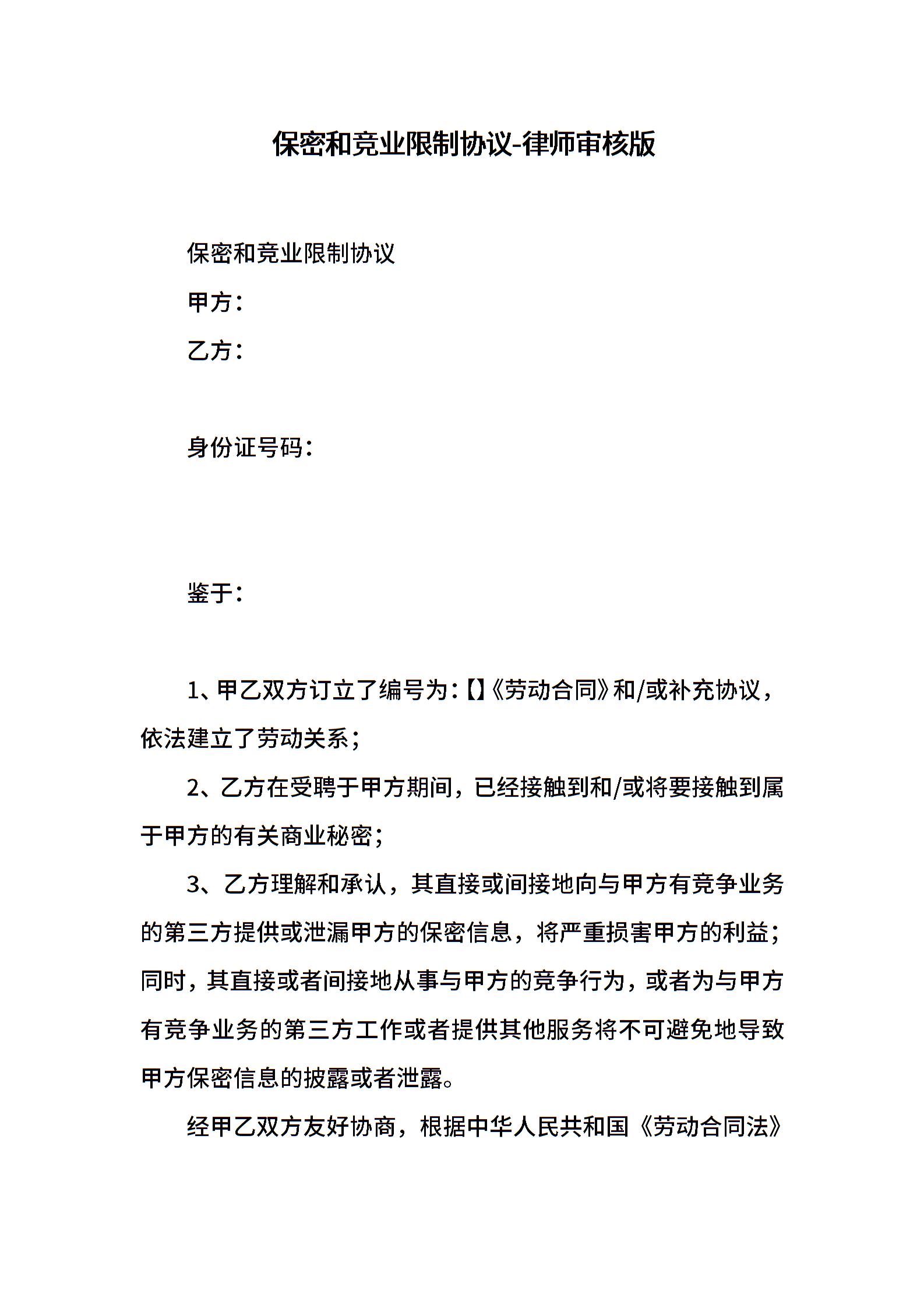 保密和竞业限制协议-律师审核版