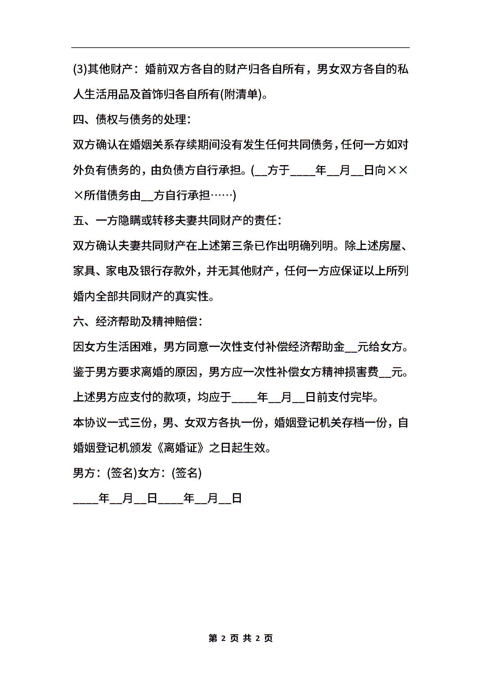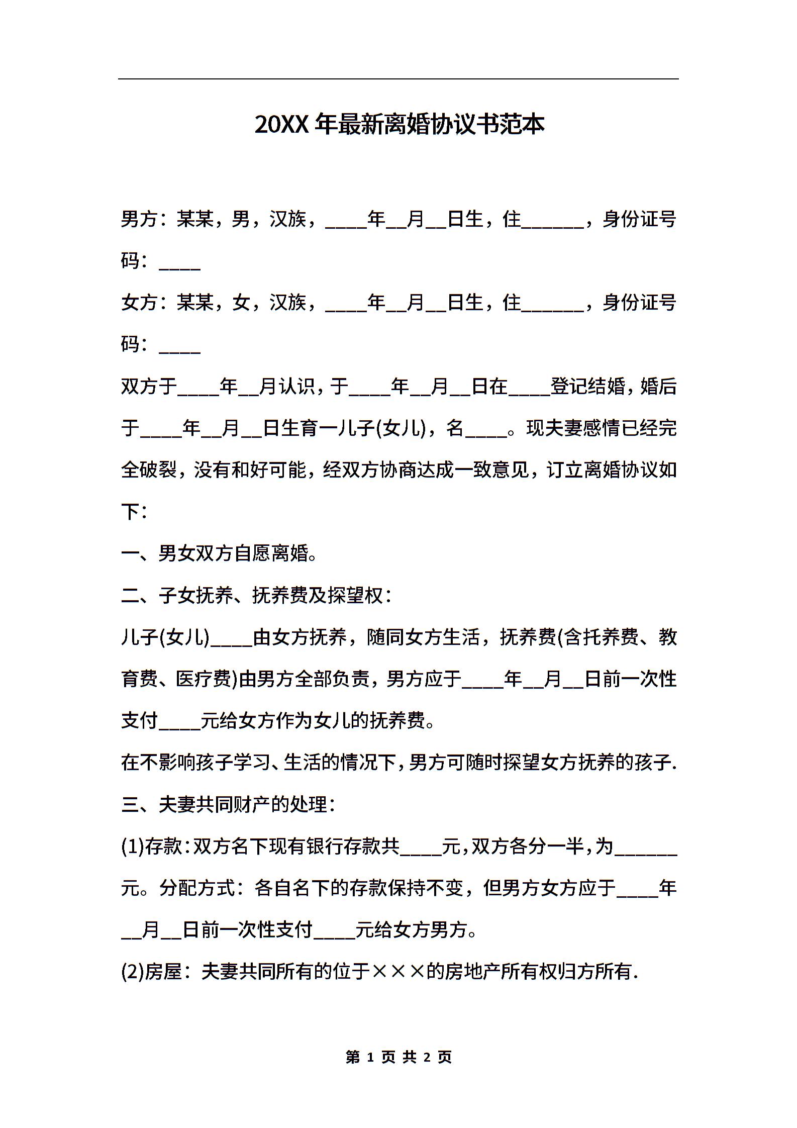 2020最新离婚协议书范本