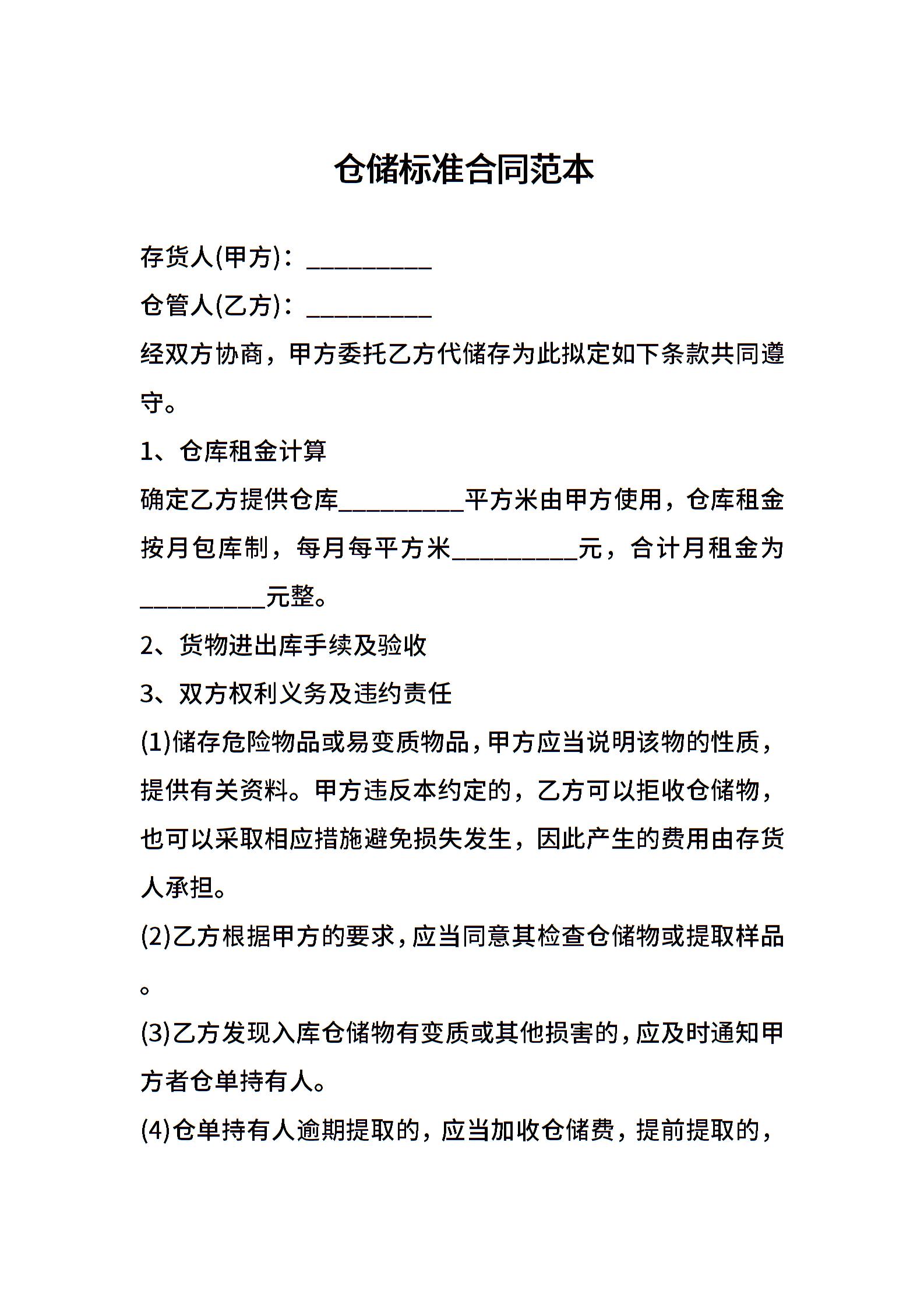 仓储标准合同范本