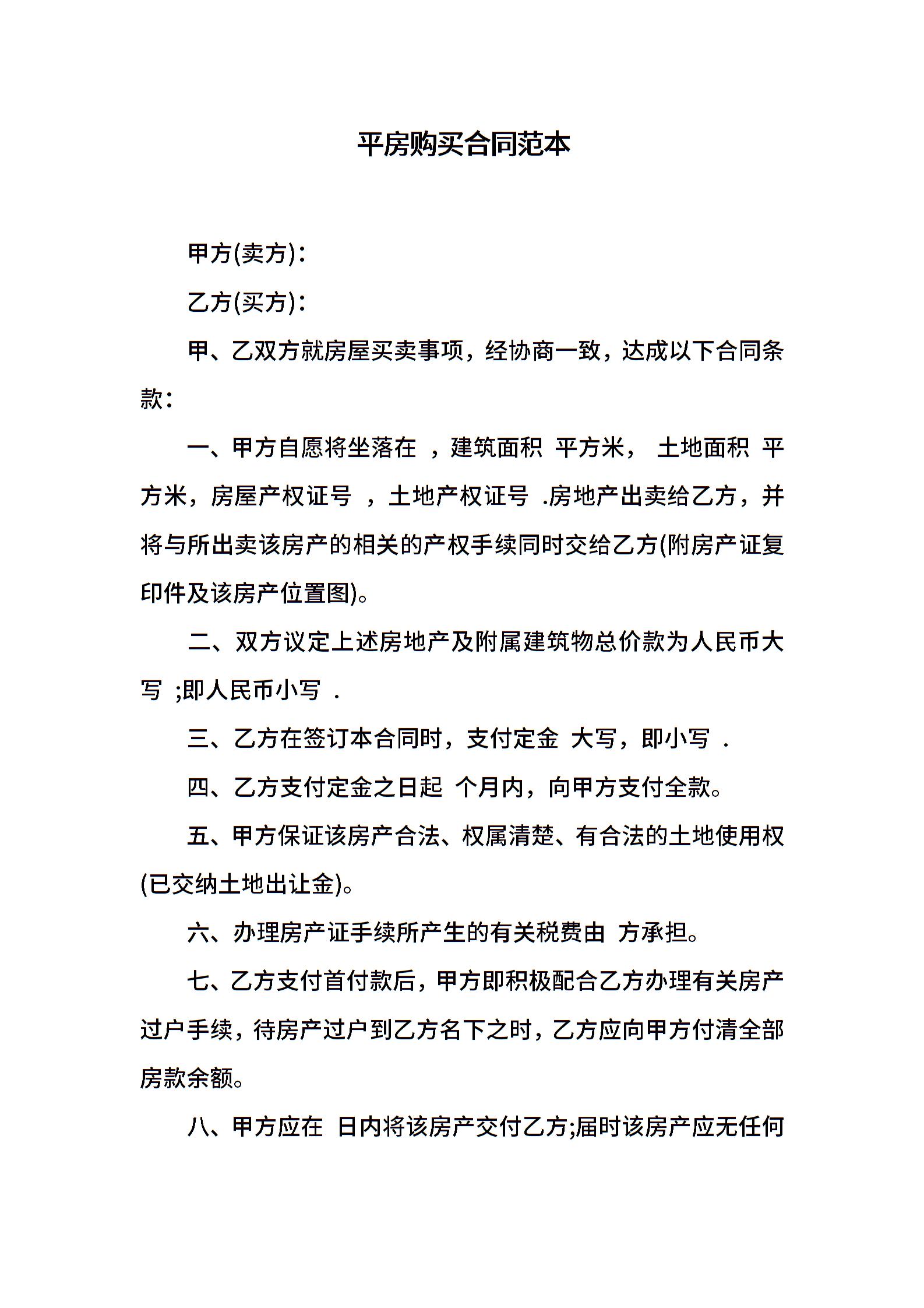 平房购买合同范本