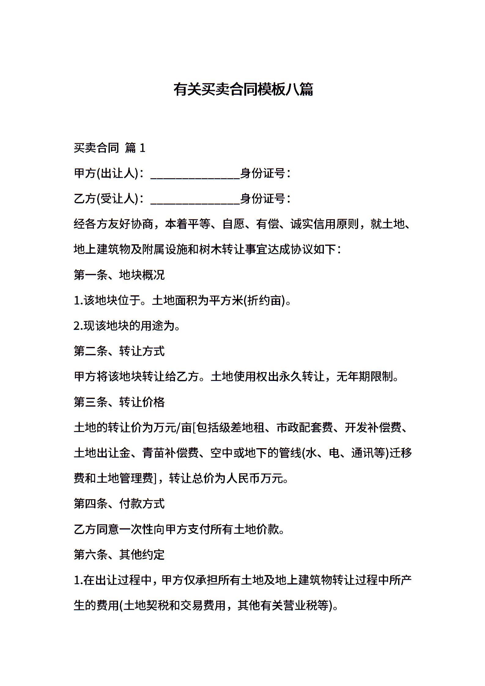 有关买卖合同模板八篇
