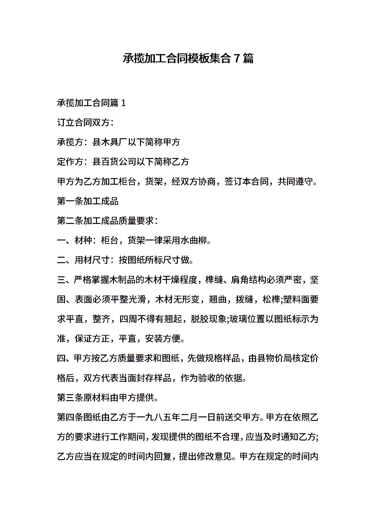承揽加工合同模板集合7篇