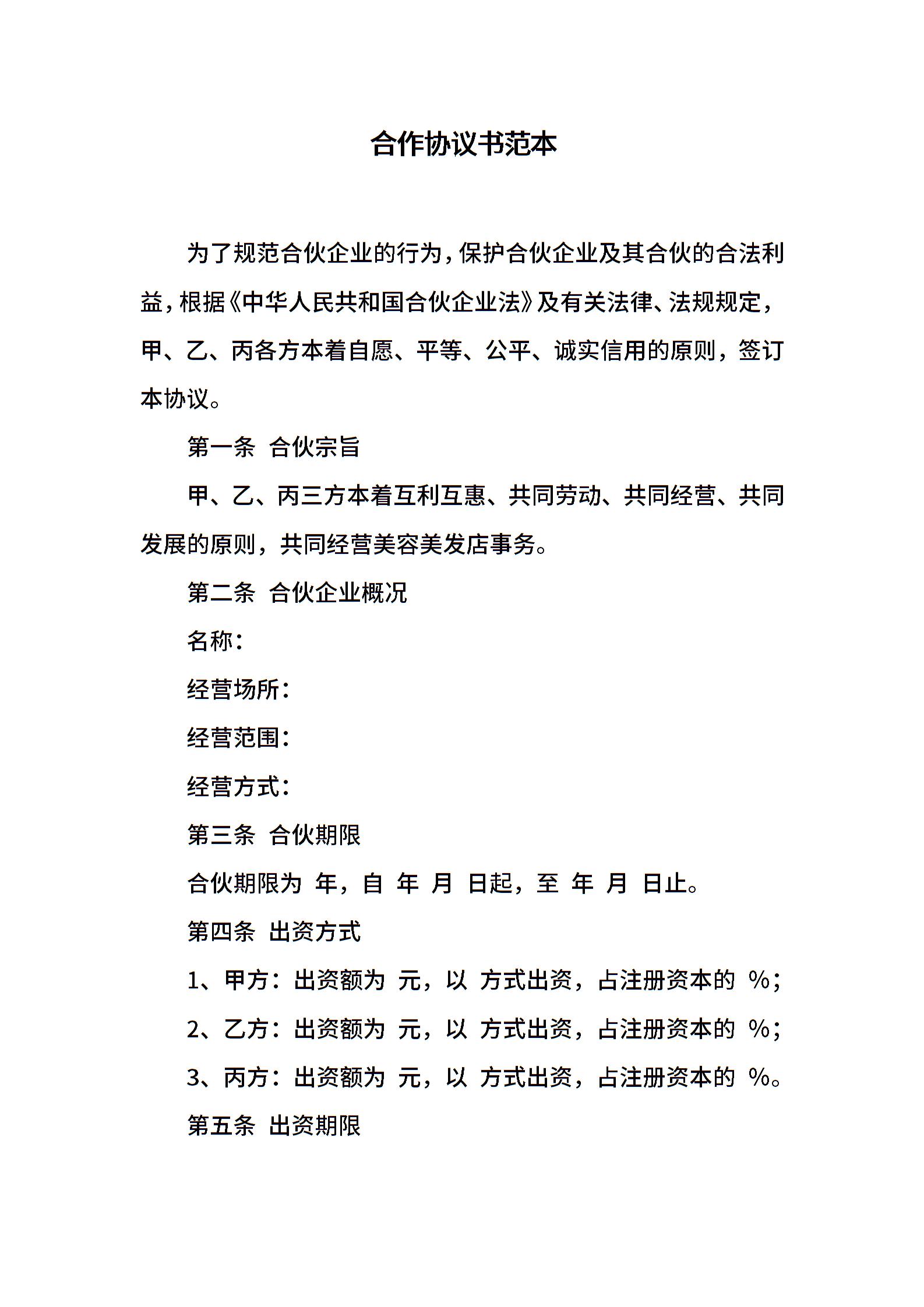 当前位置:量子办公 > 合同模板 > 合作合同 >