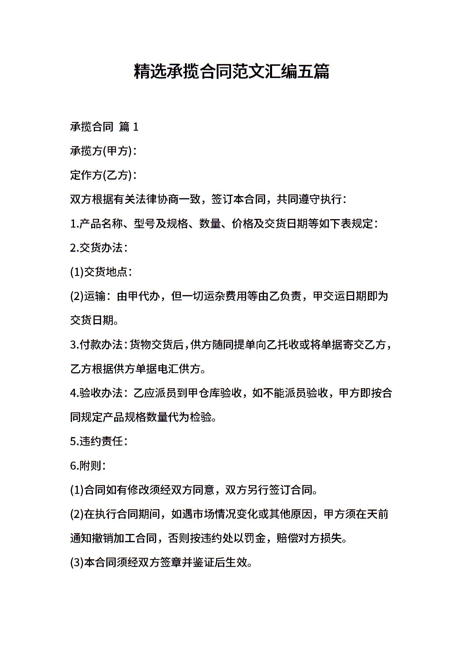 精选承揽合同范文汇编五篇
