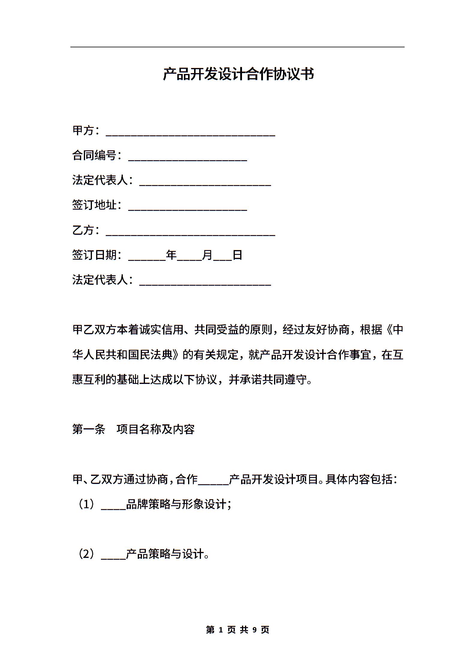 产品开发设计合作协议书