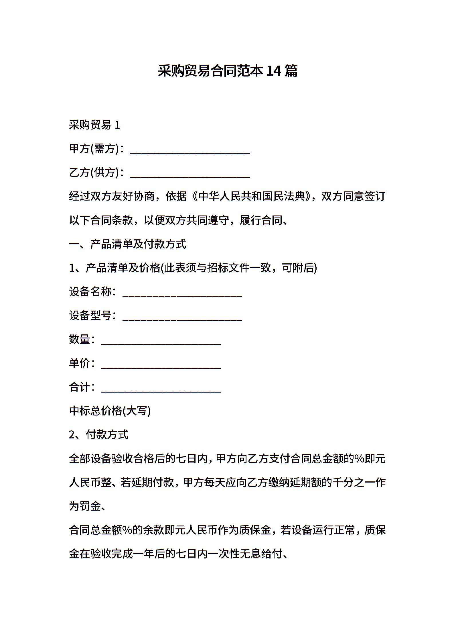 采购贸易合同范本14篇