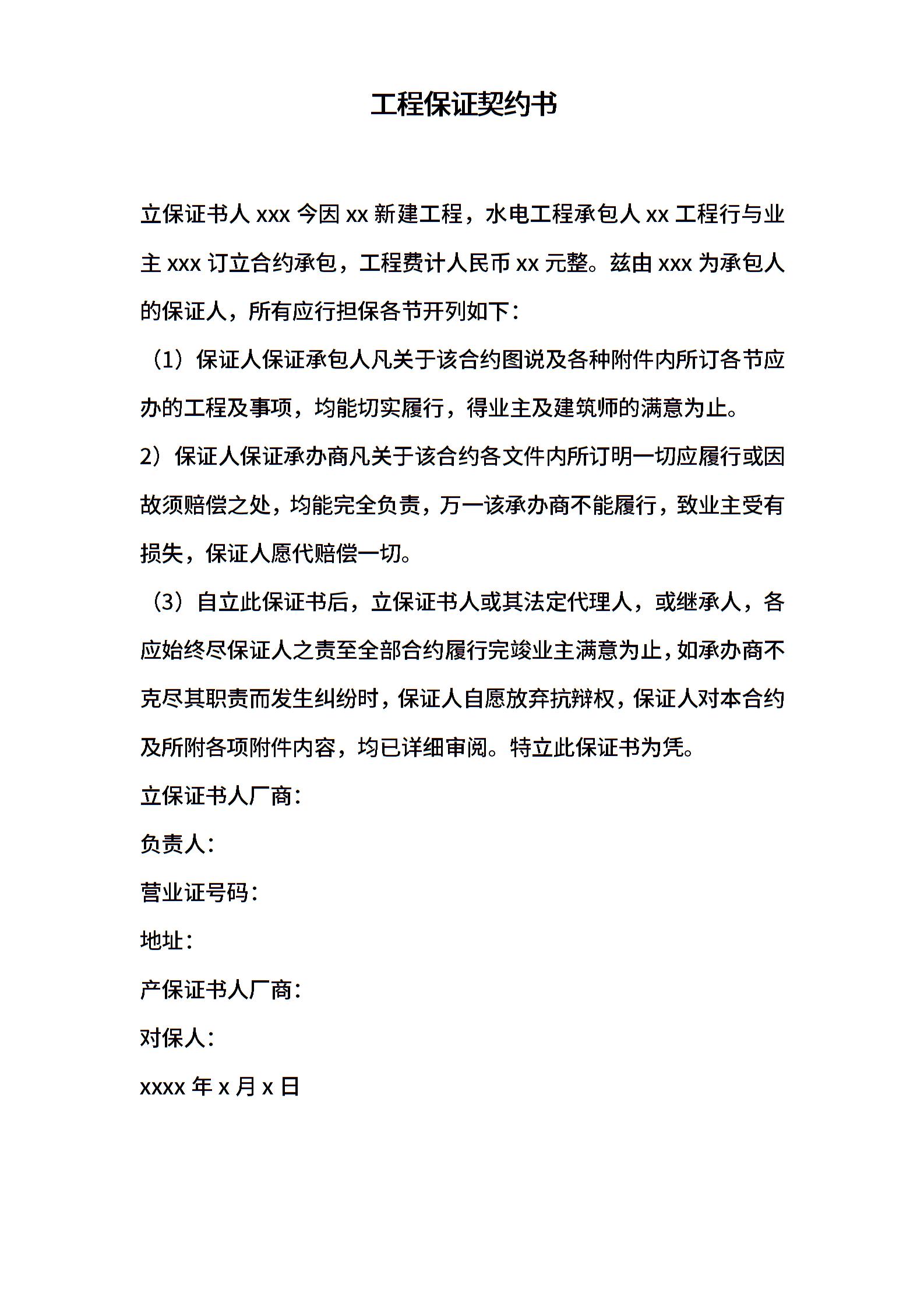 工程保证契约书
