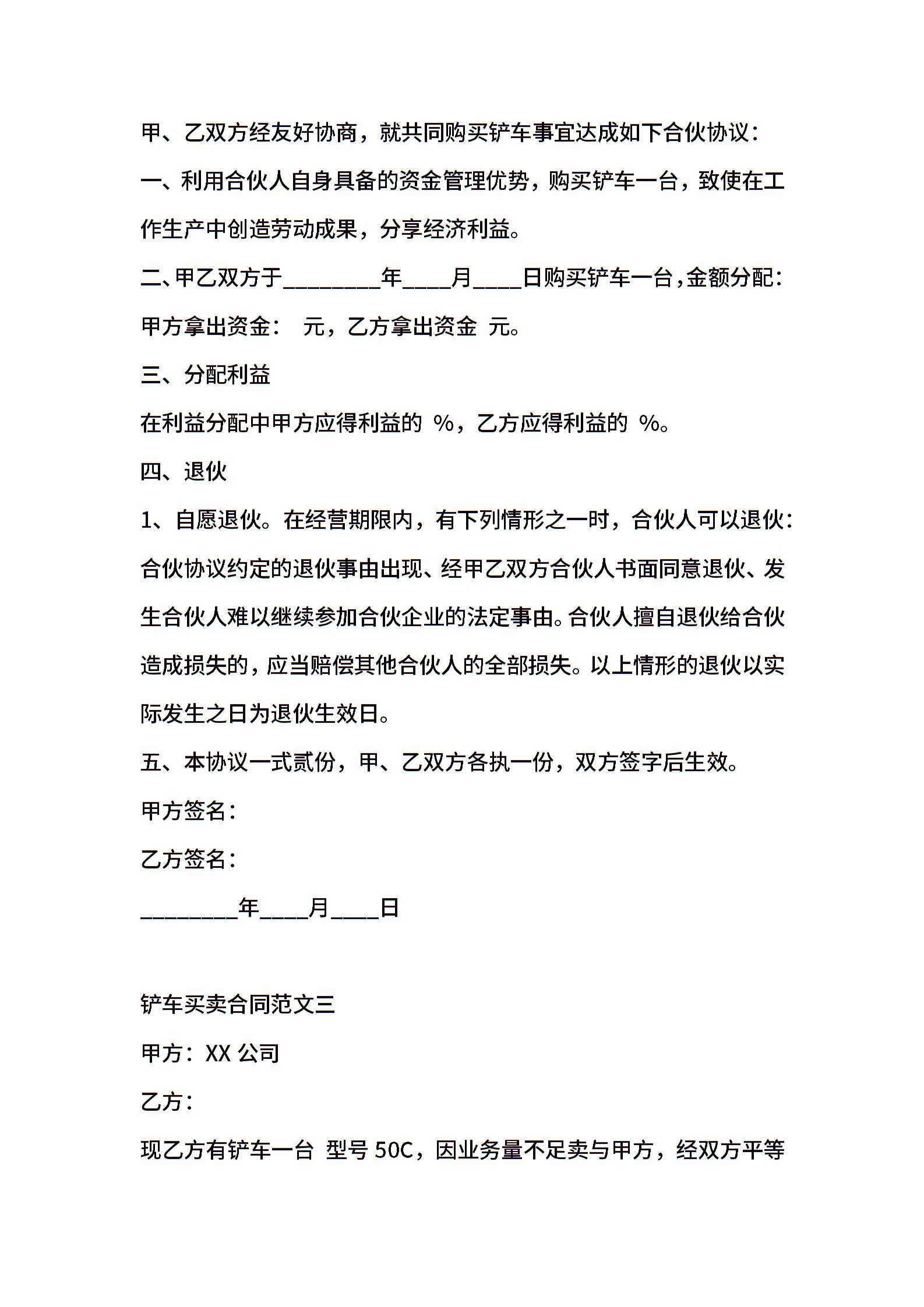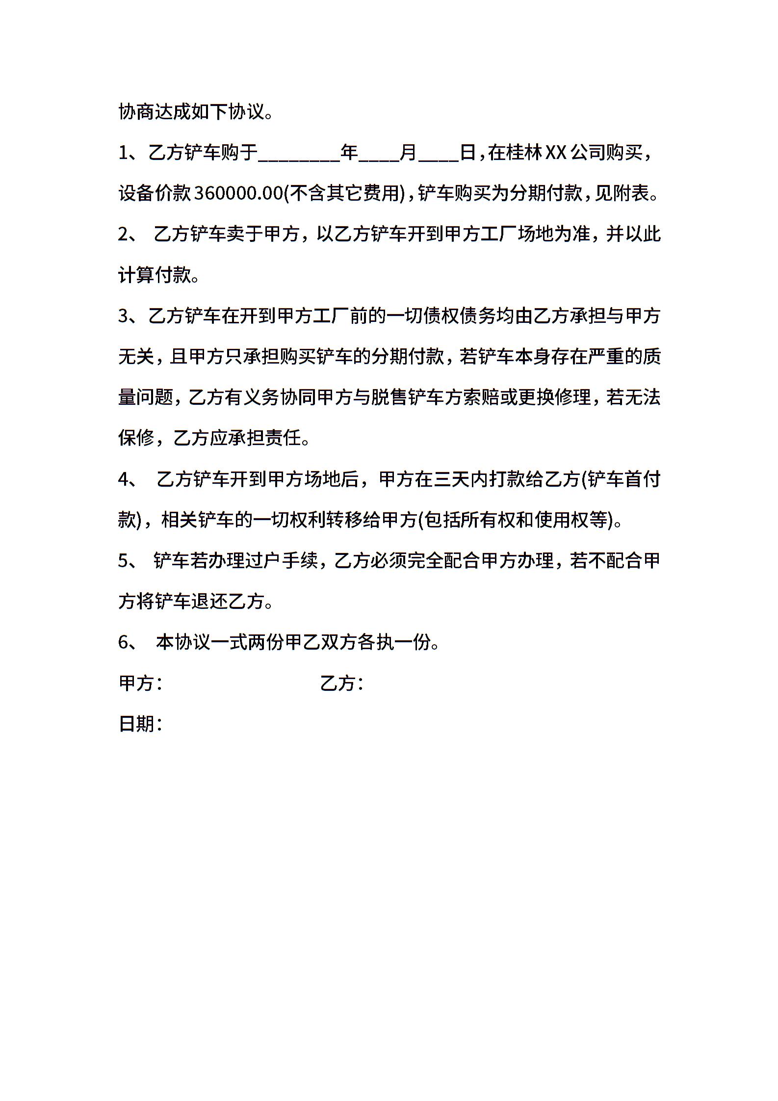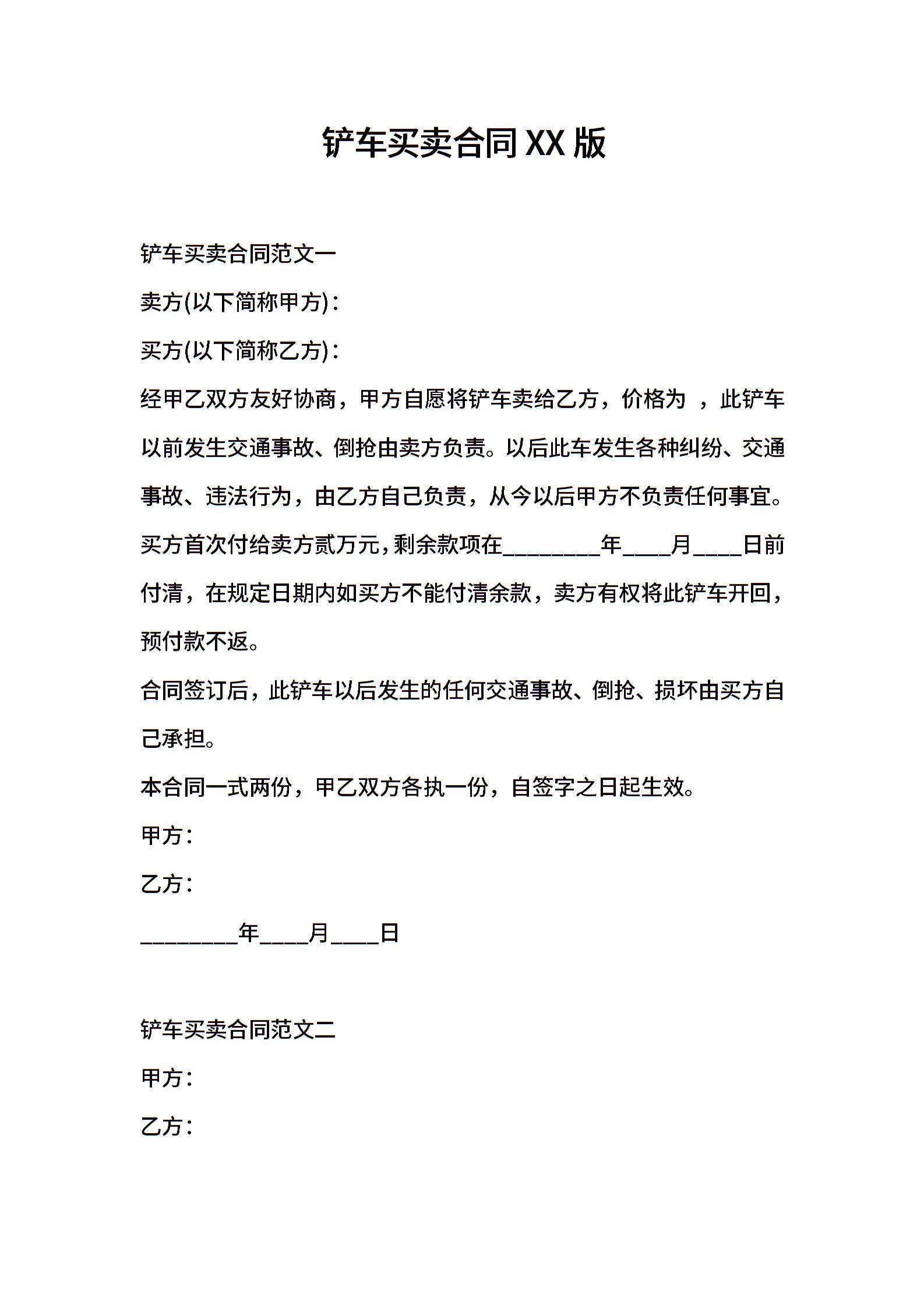 铲车买卖合同XX版