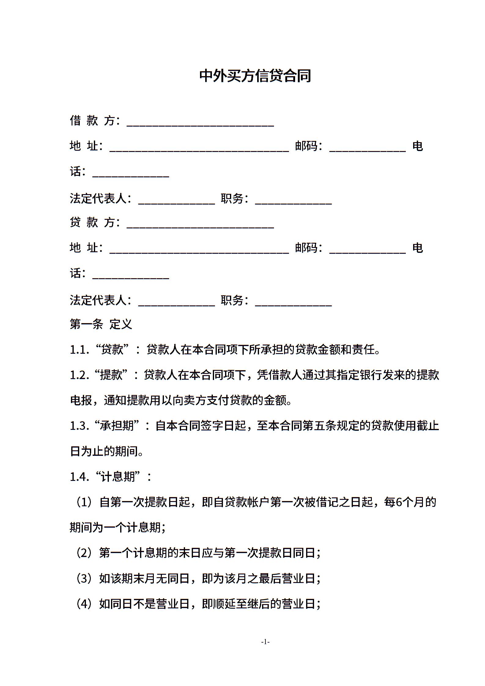 中外买方信贷合同